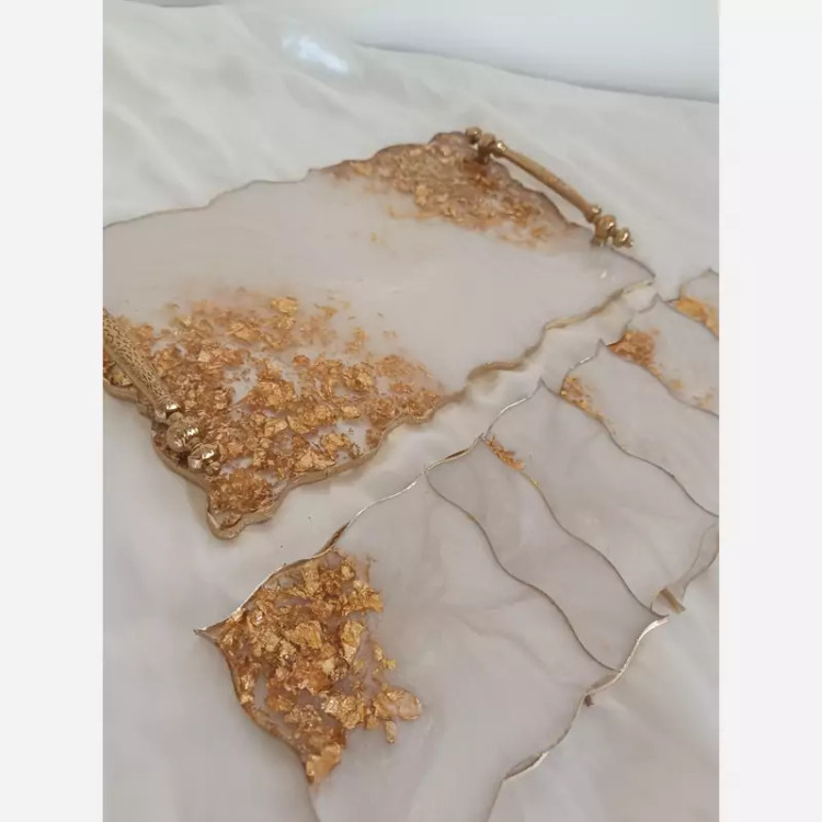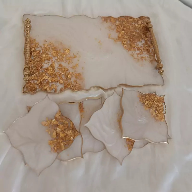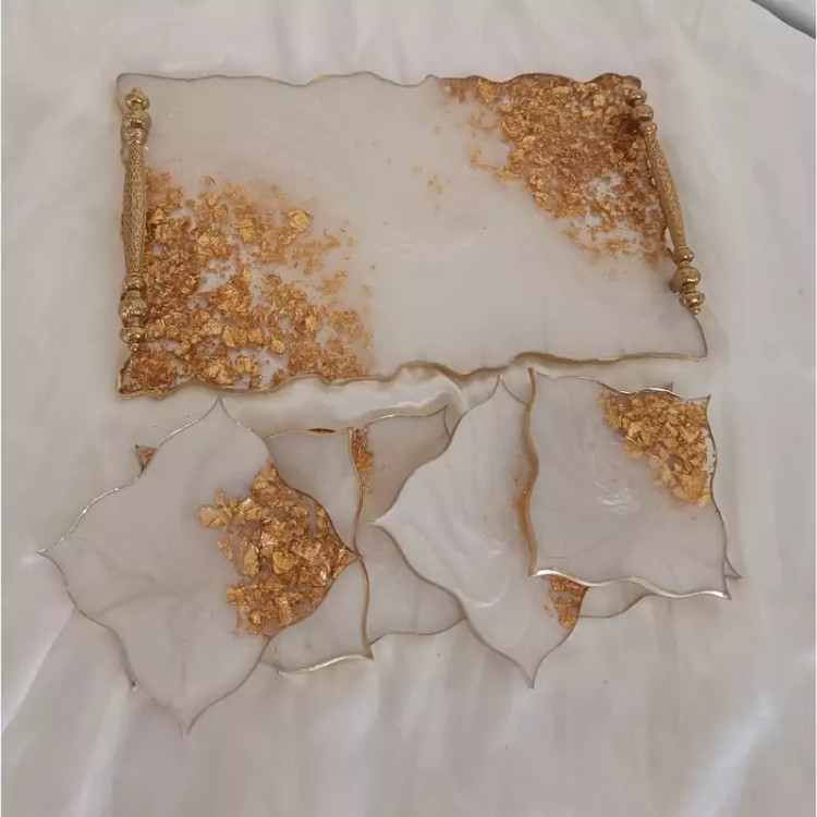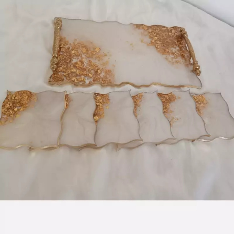 سینی رزینی ب همراه زیر استکانی رزینی سینی بله برون جهیزیه