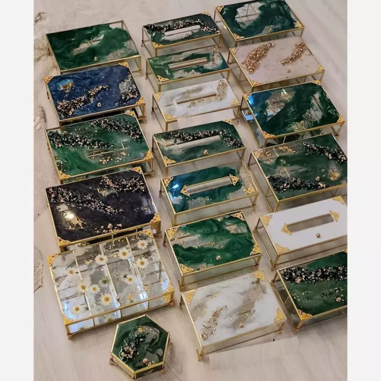 باکس تیبگ و باکس دستمال شیشه ای مجموعه دو عددی جهیزیه عروس