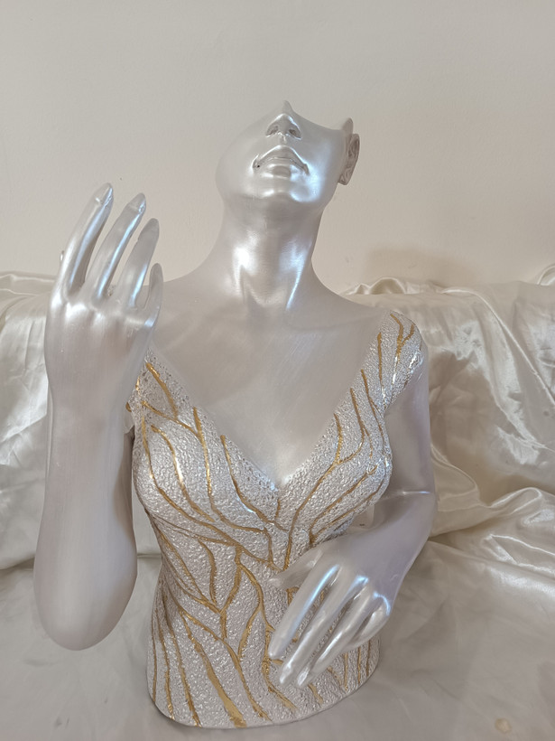 مانکن بزرگ زیورآلات استند طلا و جواهر سفید صدفی قد کار۵۶