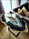 میز بزرگ جلو مبلی چوبی رزینی مدل دفرمه کریستال ژئود