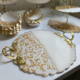 سرویس ظروف پذیرایی رزین کرم طلایی 6 نفره جهیزیه عروس