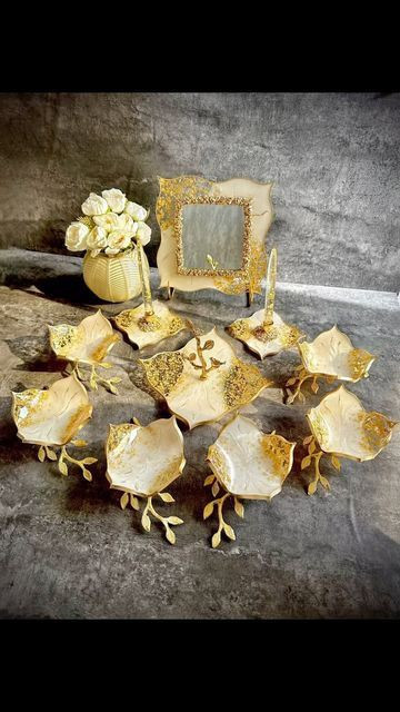 هفت سین مدرن شامل ۶پیاله،استند پذیرایی و اینه و شمعدان