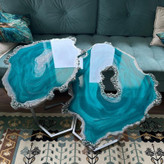 میز دفرمه جلو مبلی قابل سفارش در ابعاد مختلف قابل انتخاب با پایه فلزی یا چوبی همراه کار یک عدد میز عسلی دفرمه یا ساعت دفرمه هم ست میز هدیه داده میشود
