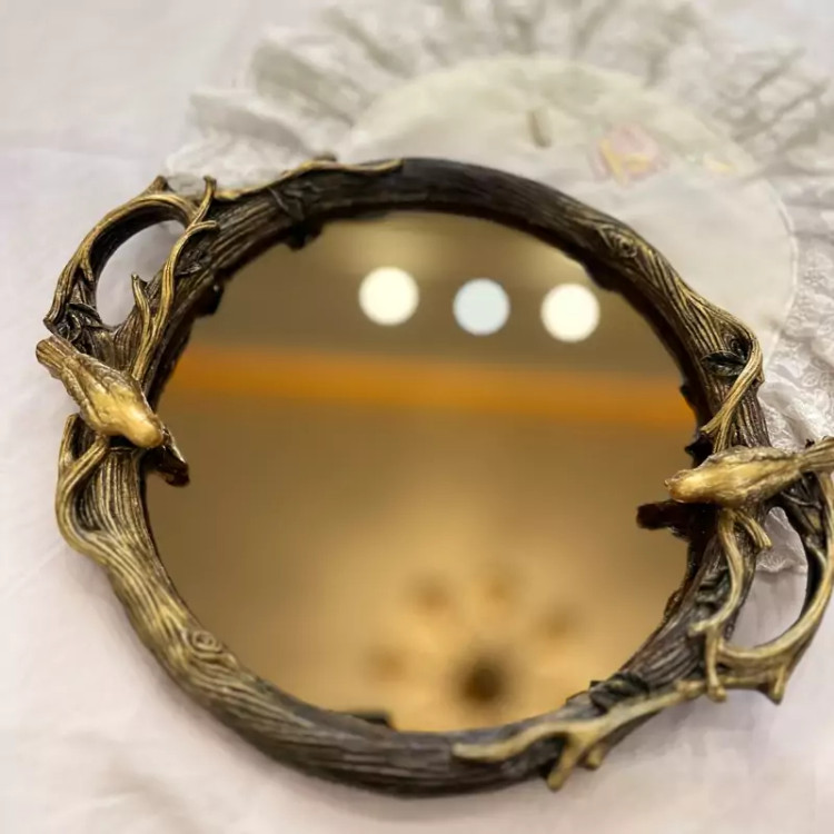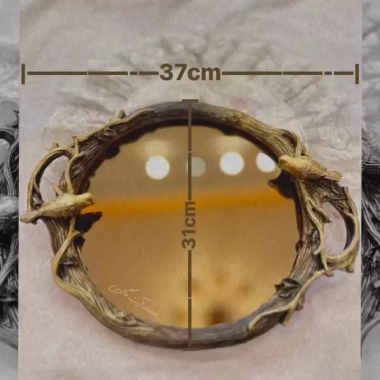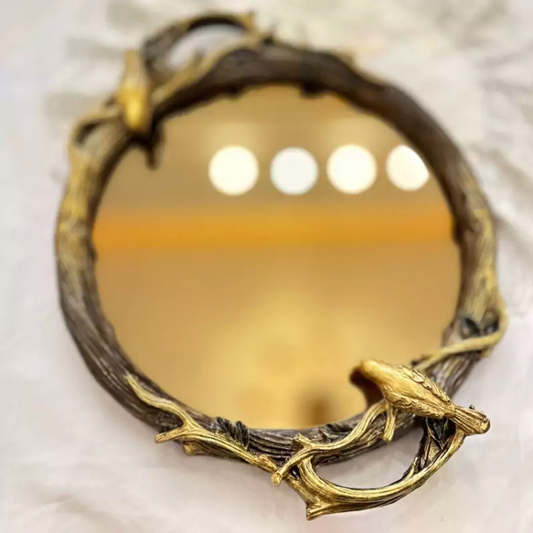 سینی گنجشکی کف آینه دار پذیرایی سینی گنجشک دار پرنده پلی استر با آینه برنز قابل سفارش با آینه نقرهای