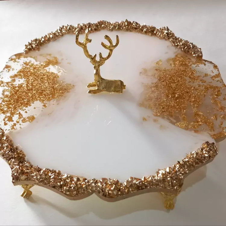 سینی مزه تمام رزین کار شده با سنگ. پایه دار به همراه هولدر گورن.قابل سفارش در هر رنگ