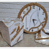 ساعت رزینی ۵۰ سانت با موتور آرام گرد کارشده با سنگ ژئود به همراه سطل زباله جاکلیدی جای دستمال کاغذی