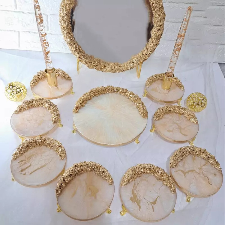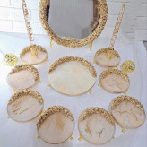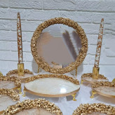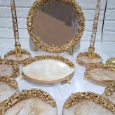 هفت سین رزینی با آینه ۳۰ سانت سنگ کار شده به همراه دو جاشمعی و جای سبزه