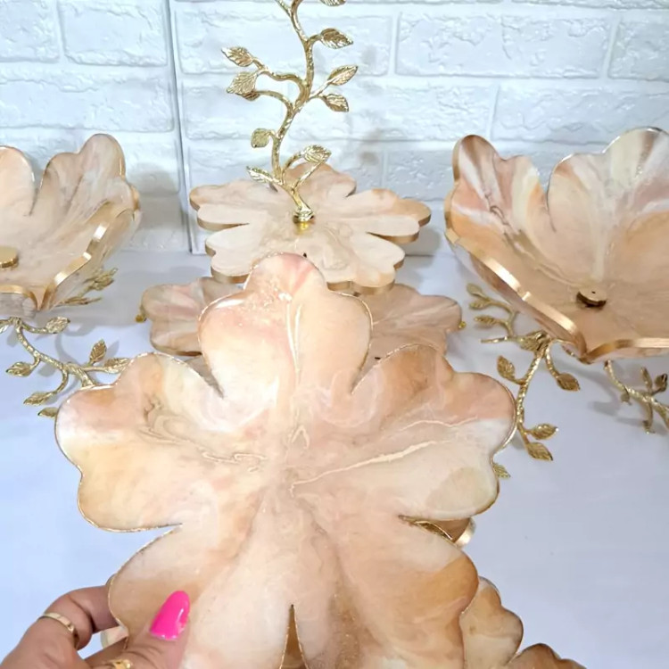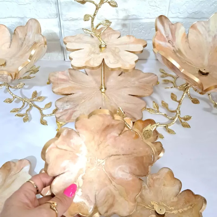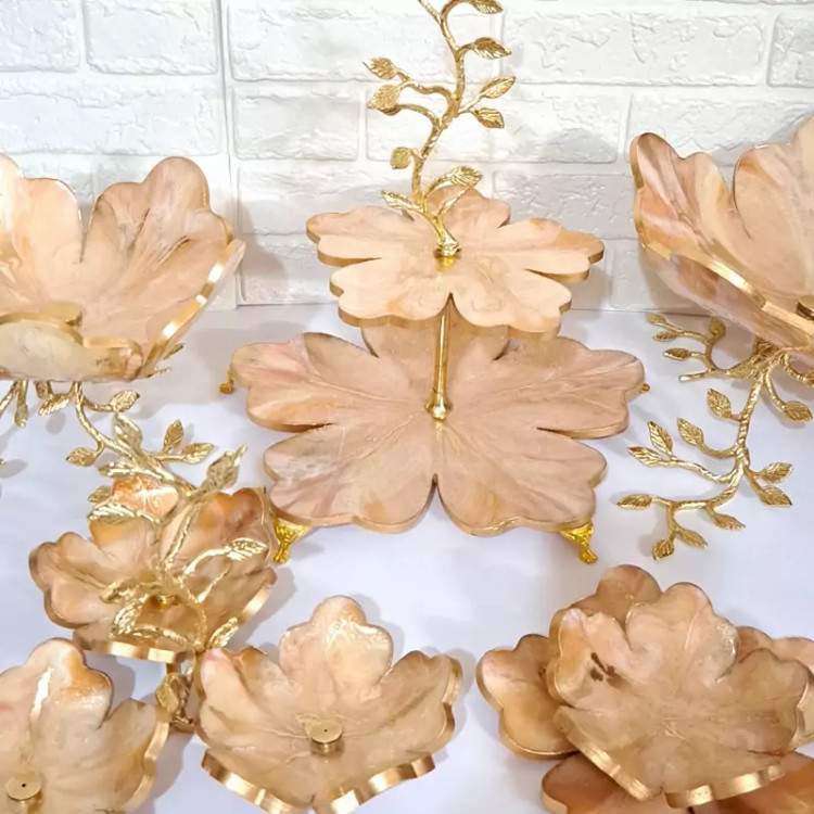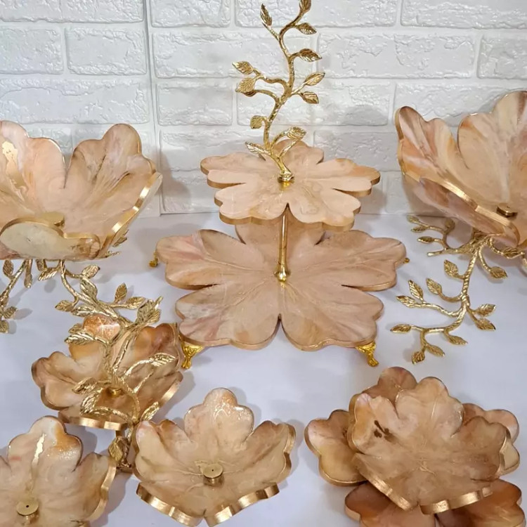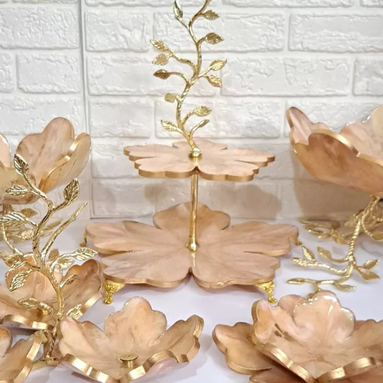 سرویس ظروف پذیرایی رزینی 6 نفره با پایه تمام برنجی