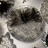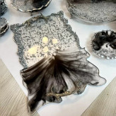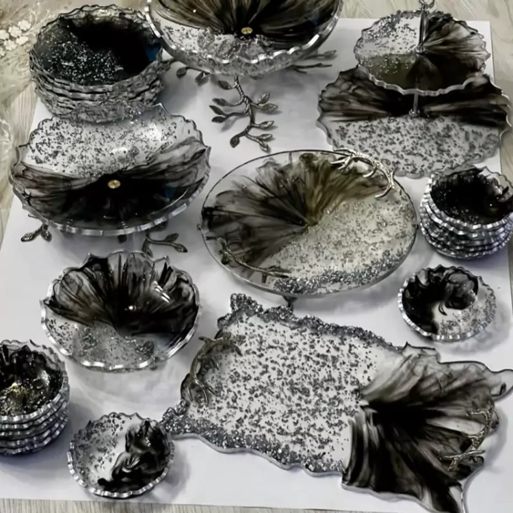 ظروف پذیرایی رزینی مشکی نقره ای 6نفره پایه برنجی