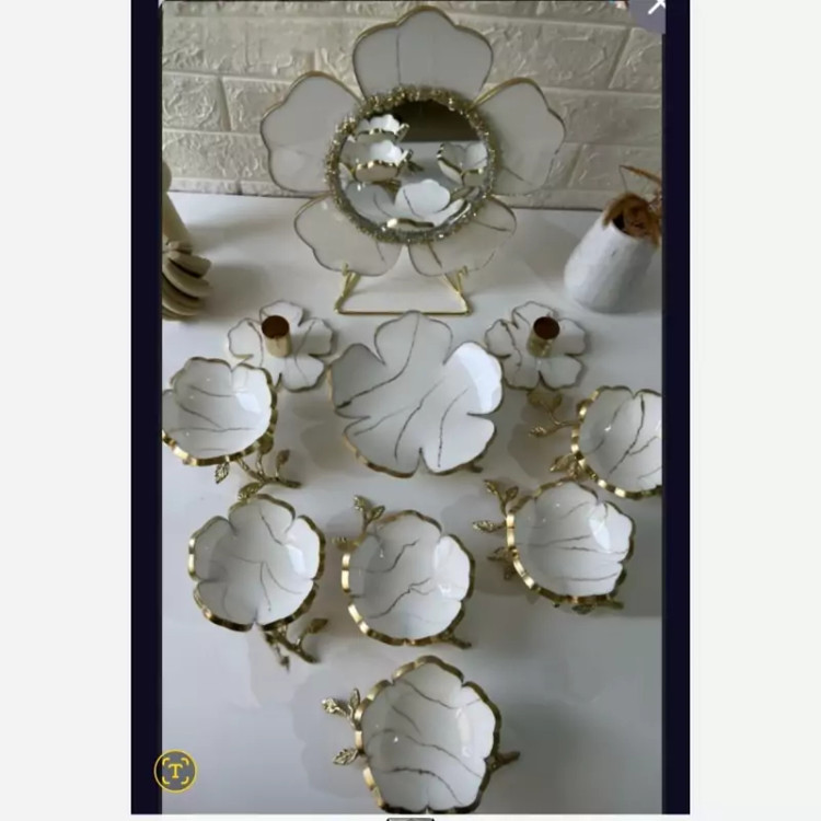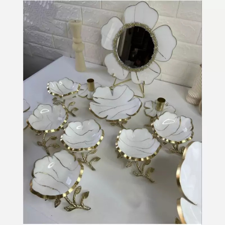 هفت سین سفید مرمری رزینی با پایه ها برنج