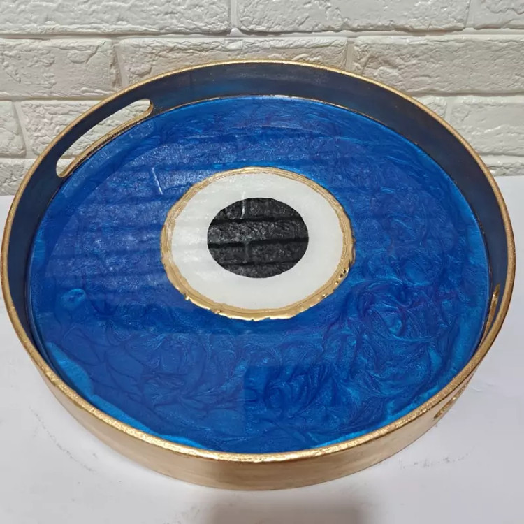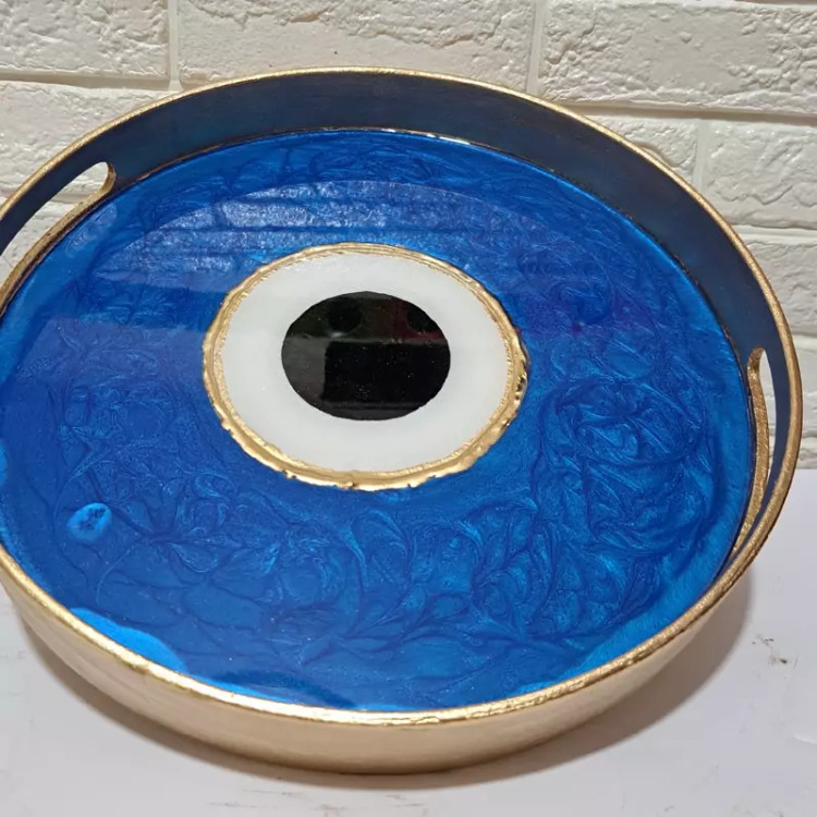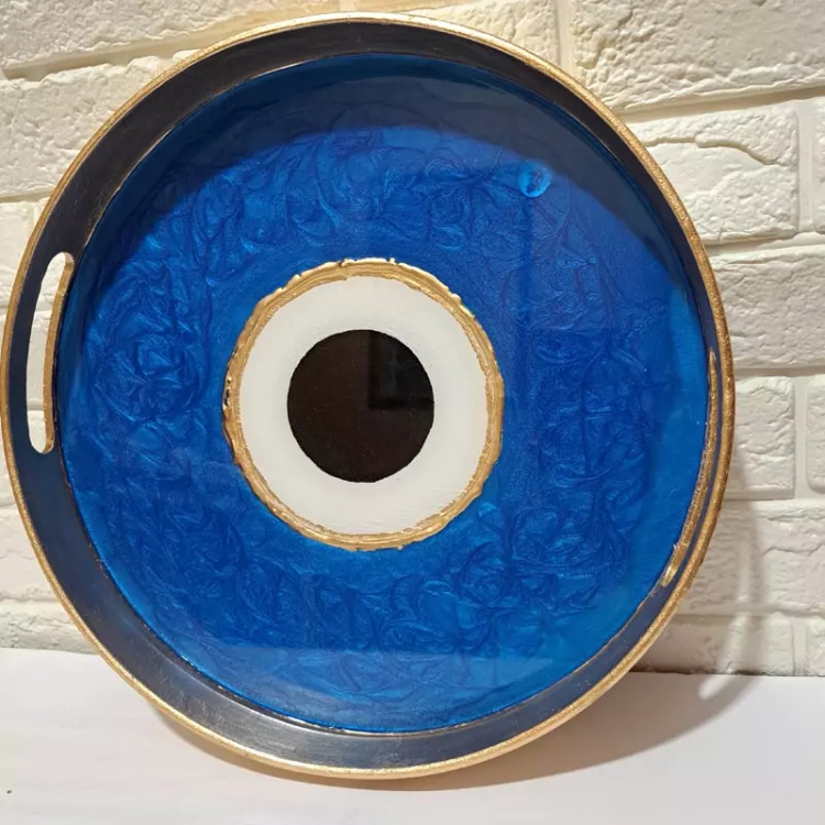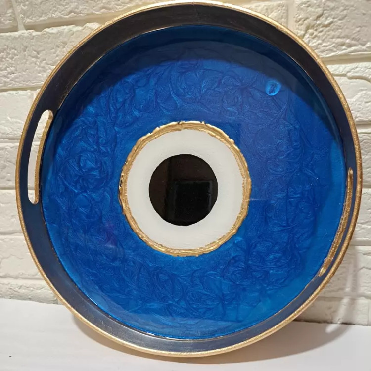 سینی چشم نظر رزینی جنس چوب نشکن و ضد خش مناسب سرو و پذیرایی کار شده با رزین
