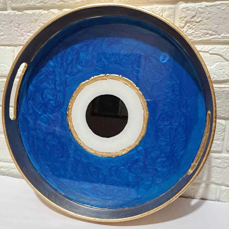 سینی چشم نظر رزینی جنس چوب نشکن و ضد خش مناسب سرو و پذیرایی کار شده با رزین