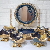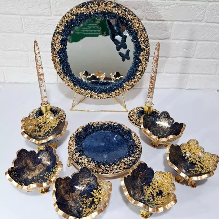 هفت سین رزینی با پایه فلزی جای سبزه 20 سانت با پایه اینه 30 سانت با پایه فلزی جاشمعی دو تا کار شده با سنگ