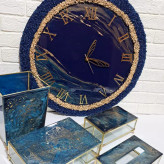 ساعت رزینی 60 سانت به همراه جای تیبگ سطل زباله جا دستمال کاغذی جای کاردو چنگال