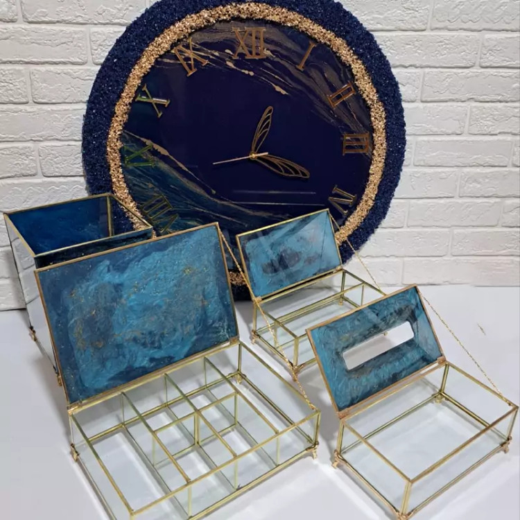ساعت رزینی 60 سانت ب همراه ست ۴تکه شیشه ای رزینی