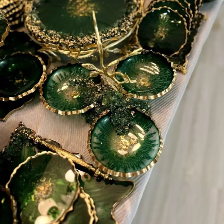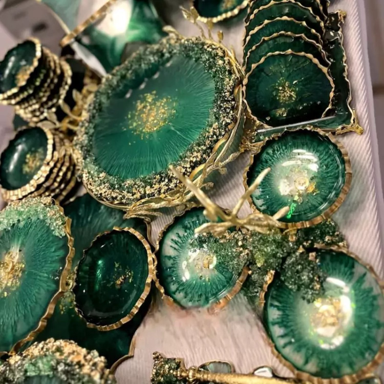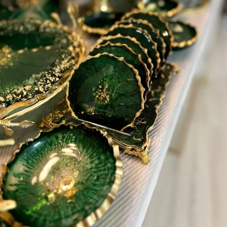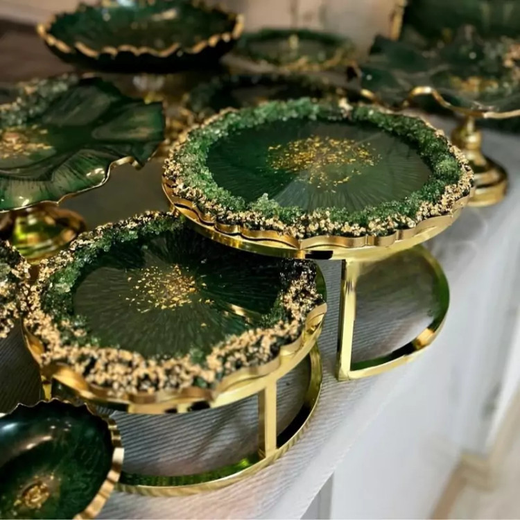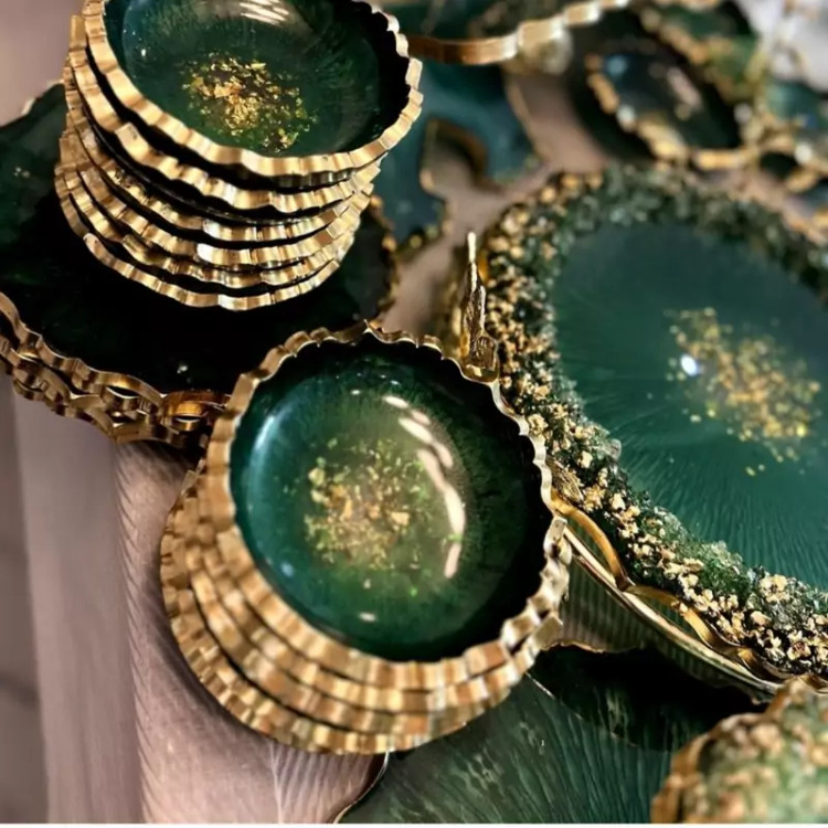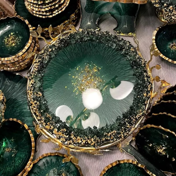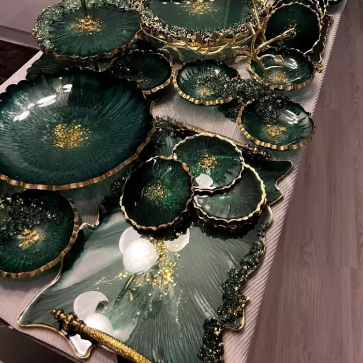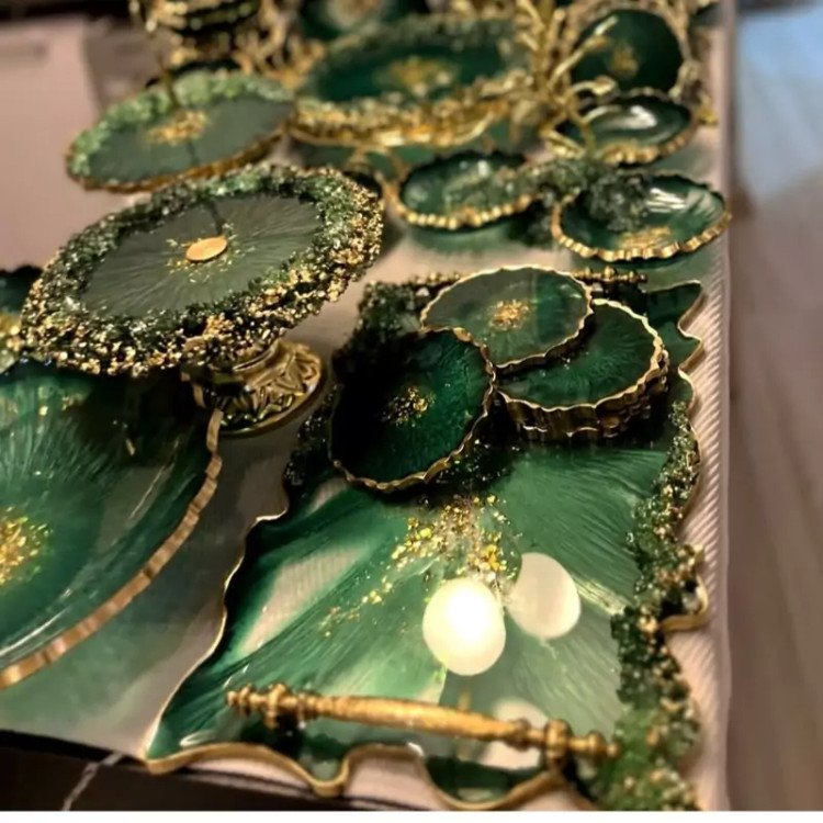 سرویس ظروف پذیرایی رزینی ۱۲ نفره سبز زمردی سبز درباری
