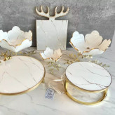 سرویس ظروف پذیرایی سفید طلایی رزینی 5تکه پایه برنجی