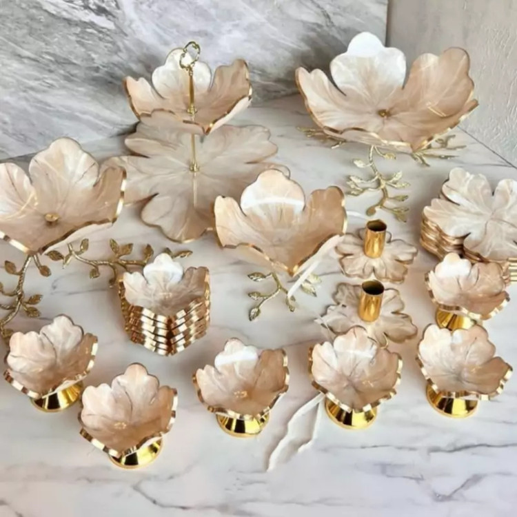 سرویس ظروف پذیرایی نباتی رزینی 6نفره پایه برگی ب همراه هفت سین