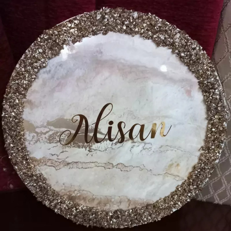 استند اسم کودک قابل سفارش در هر سایز و رنگ با اسم کودک دلبند شما کار شده با سنگ ژئود
