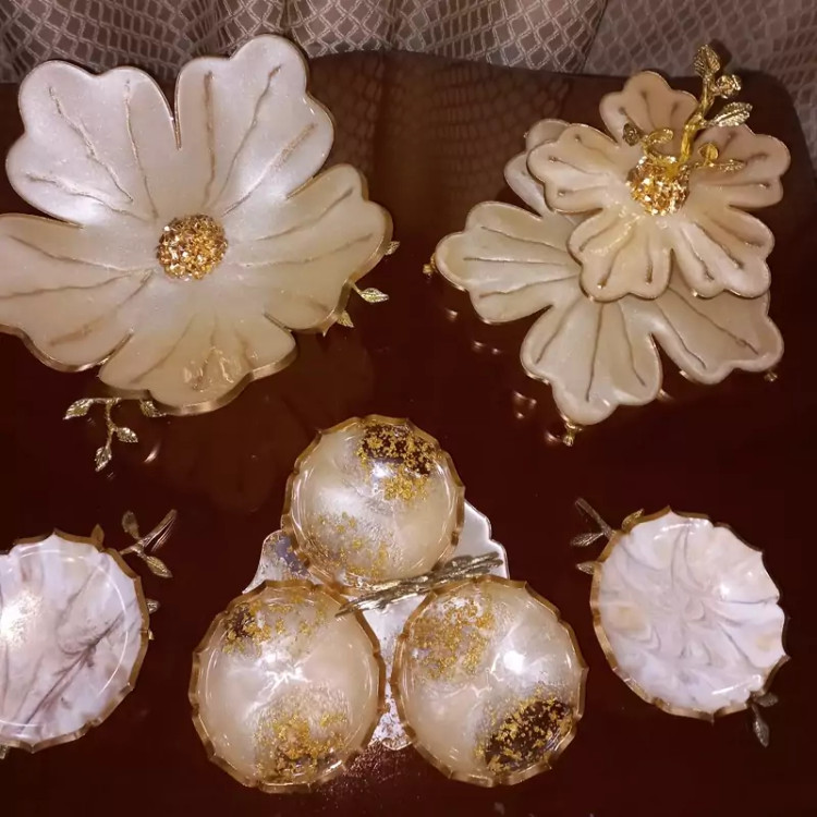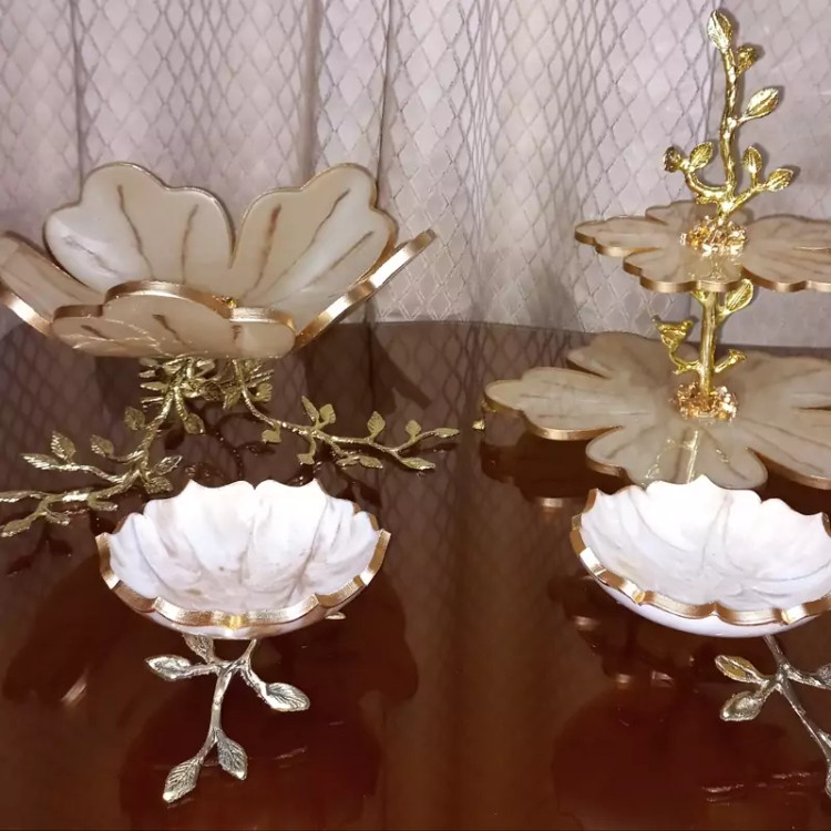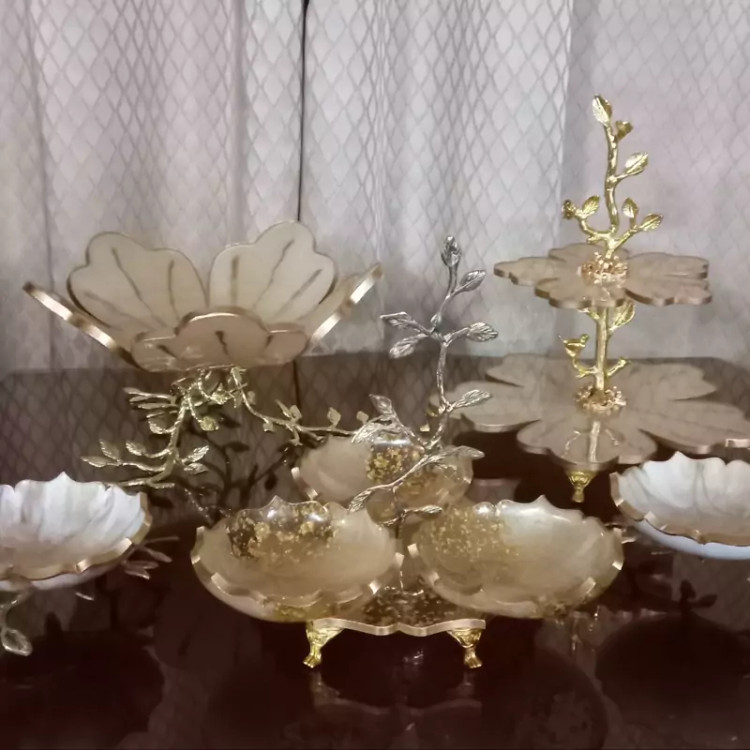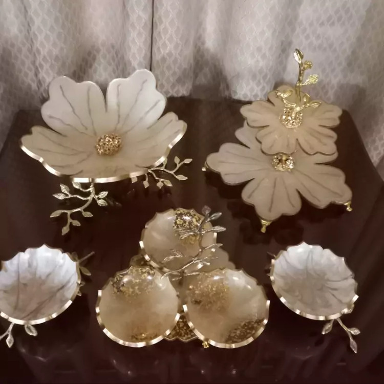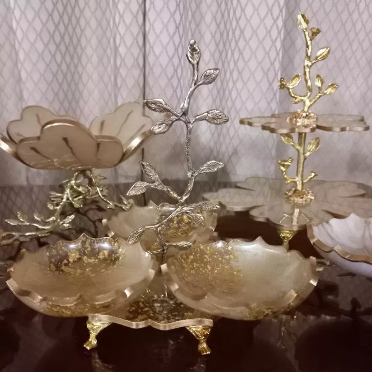 سرویس ظروف پذیرایی ۵تکه رزین و پایه برنجی
