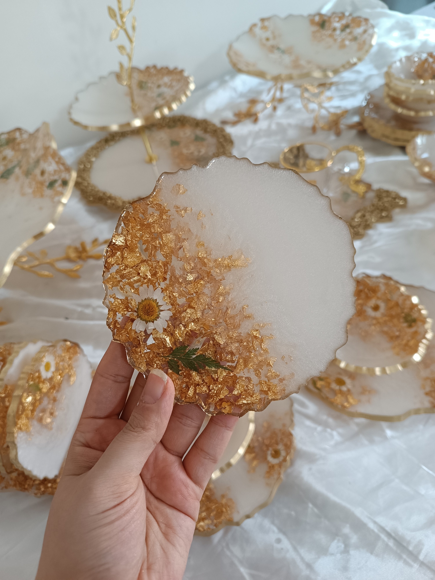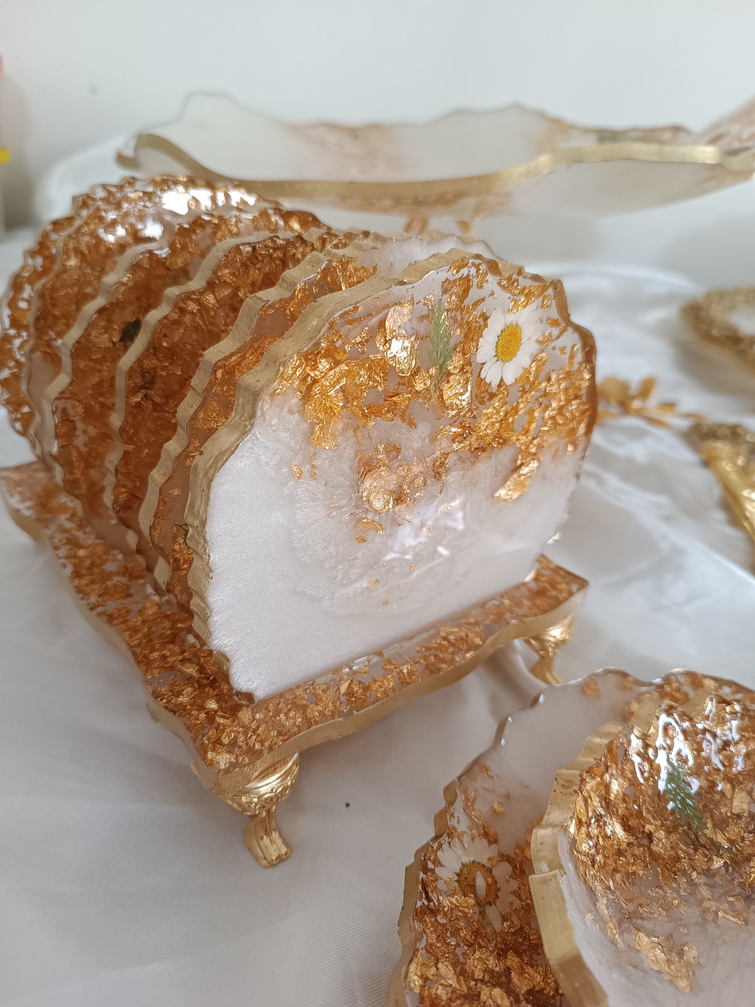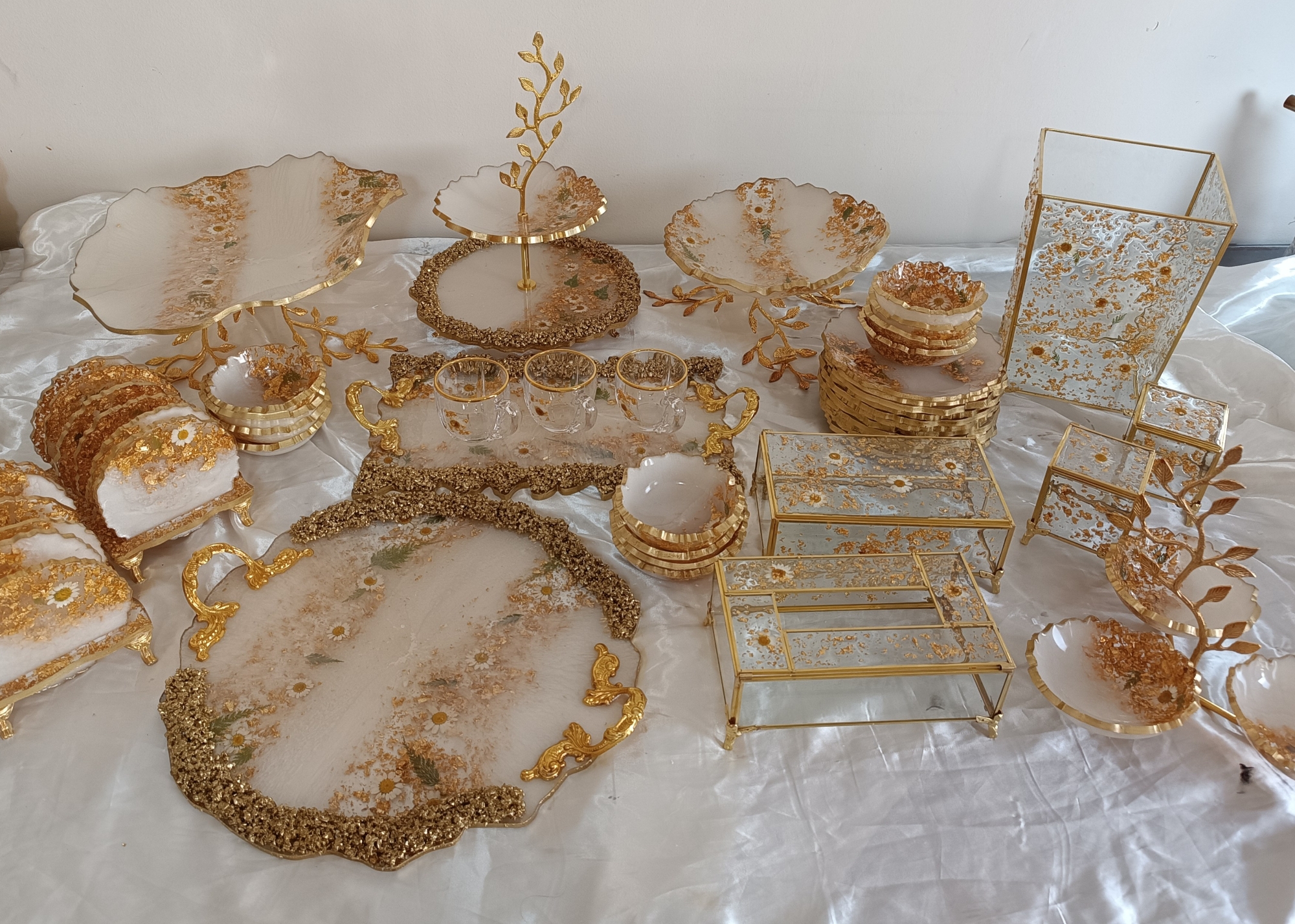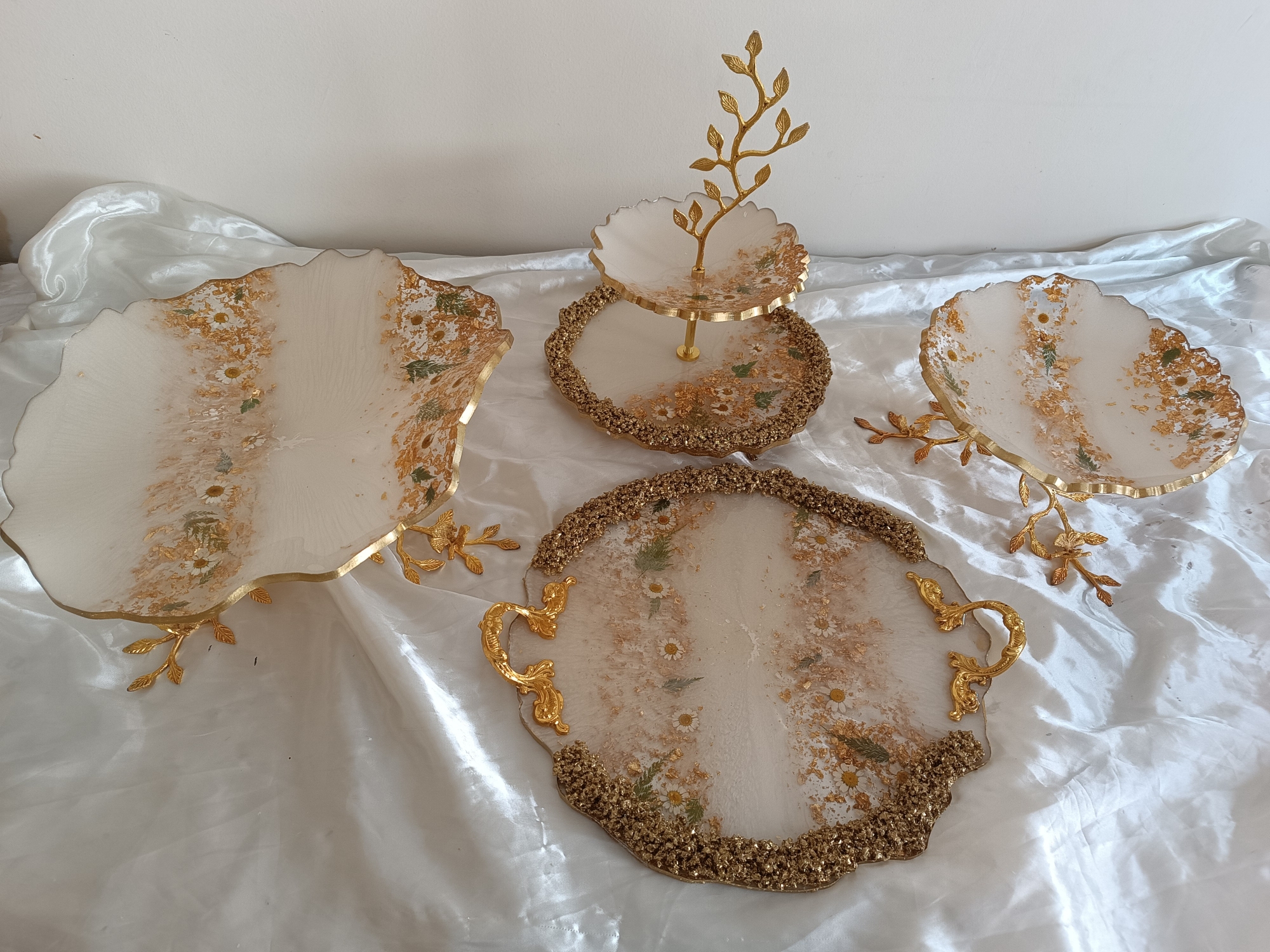سرویس ظروف پذیرایی ۶نفره پایه برنجی طرح بابونه