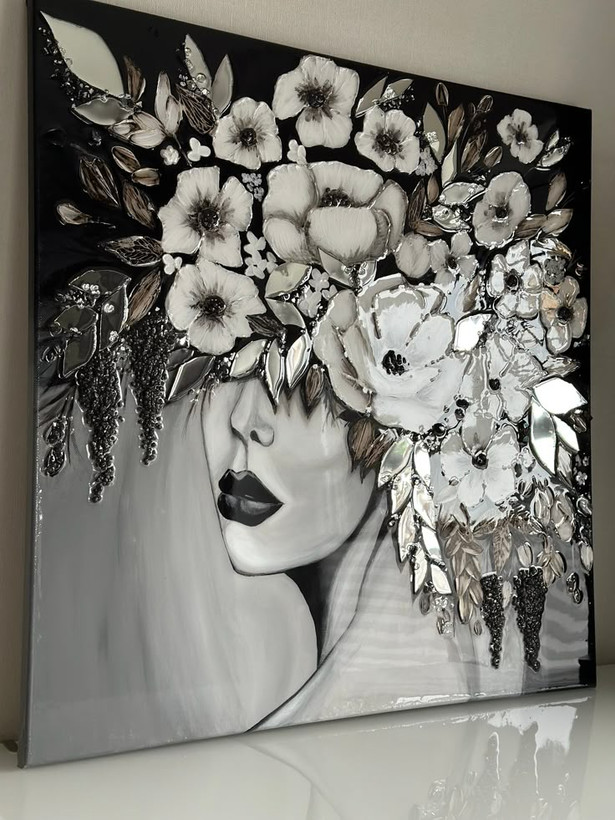 تابلو مدرن و جذاب دست گل ابعاد کار۱۰۰در۱۰۰