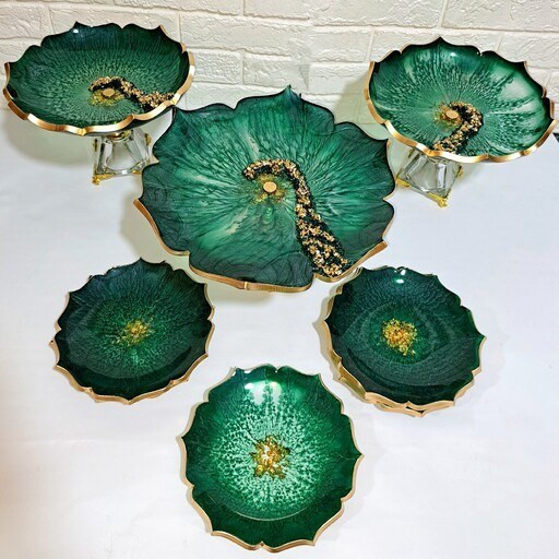 سرویس ظروف پذیرایی چهار تکه طرح سبز درباری