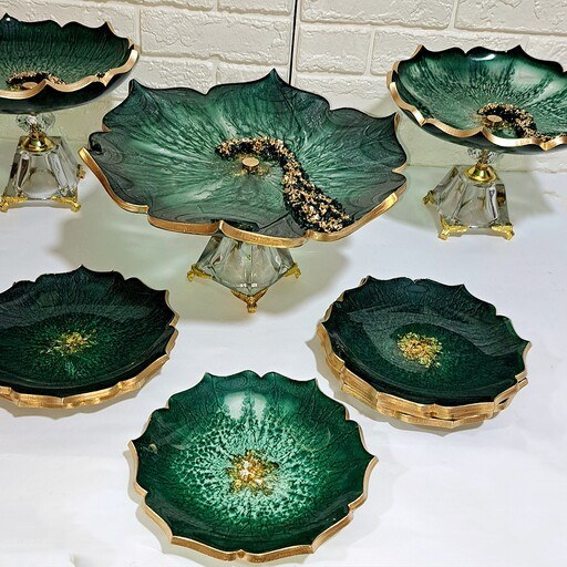 سرویس ظروف پذیرایی چهار تکه طرح سبز درباری