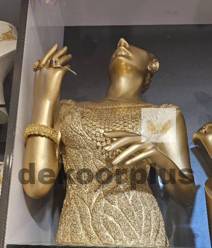 استند طلا و جواهر مانکن ویترینی بزرگ طلایی