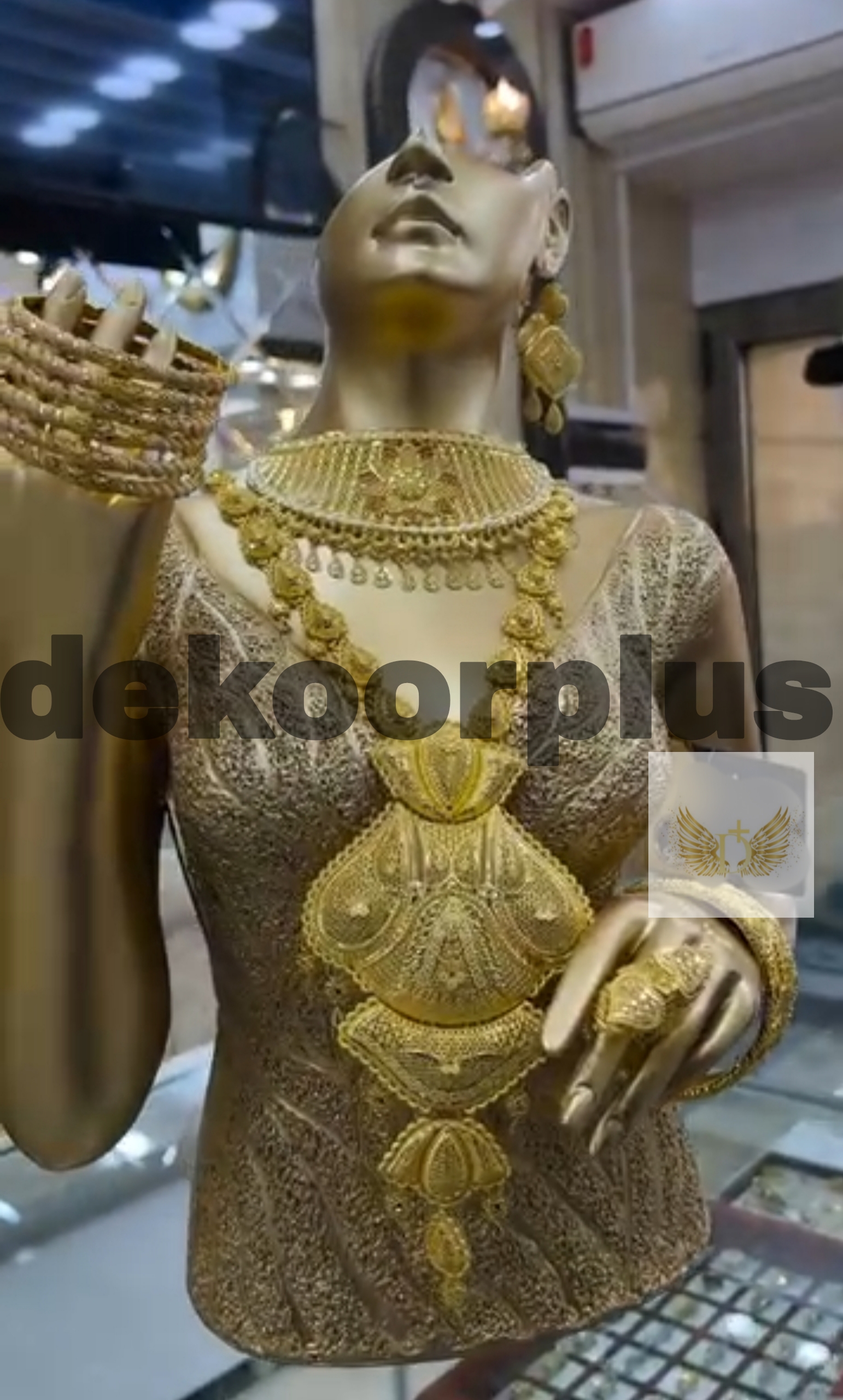استند طلا و جواهر مانکن ویترینی بزرگ طلایی