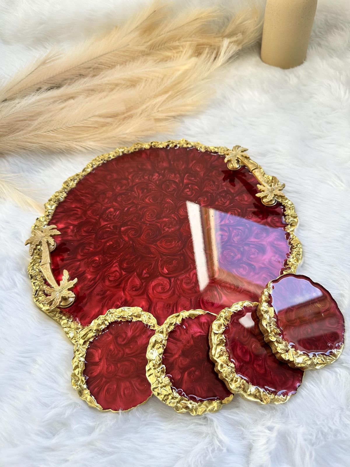 سینی لوکس رزینی و پذیرایی ب همراه ۴عدد زیر استکانی