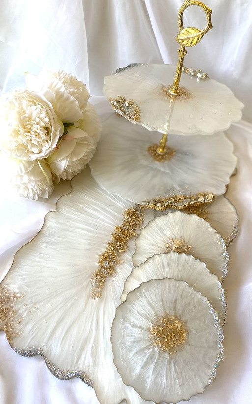 سرویس پذیرایی ۲ تکه رزینی ب همراه ۶عدد زیر استکانب