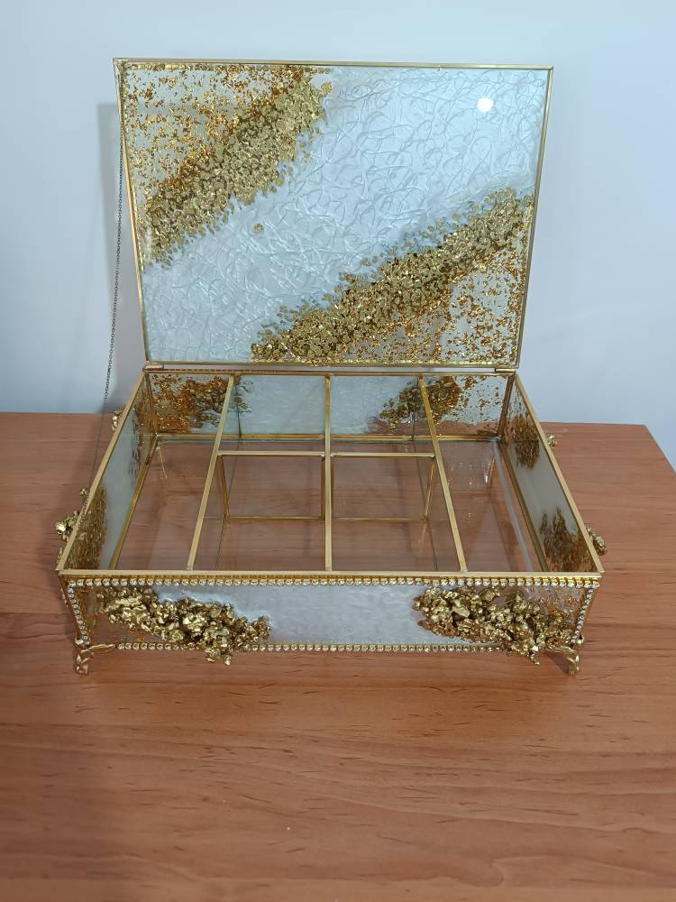 باکس تیبگ رزینی شیشه ای دور تا دور کار کار شده با کریستال و رزین