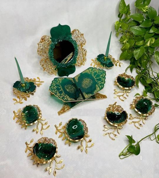 هفتسین رزینی زمرد سبز درباری پایه برگی لوکس