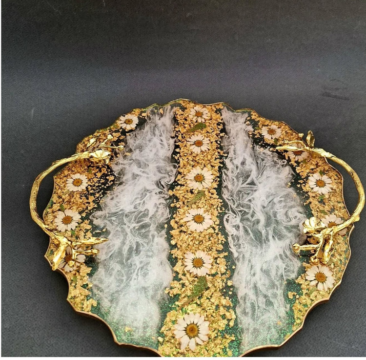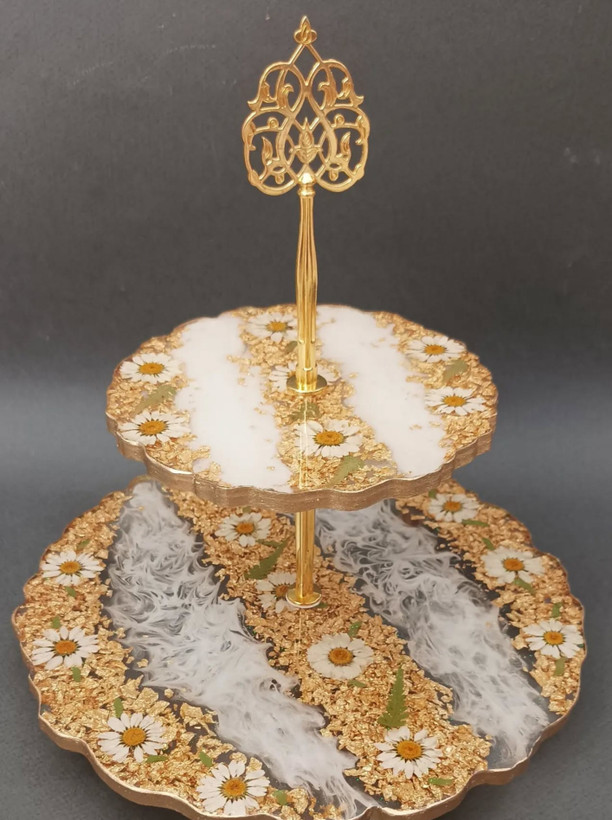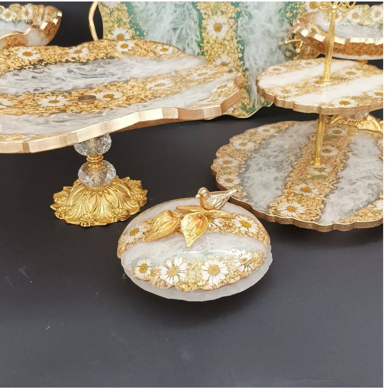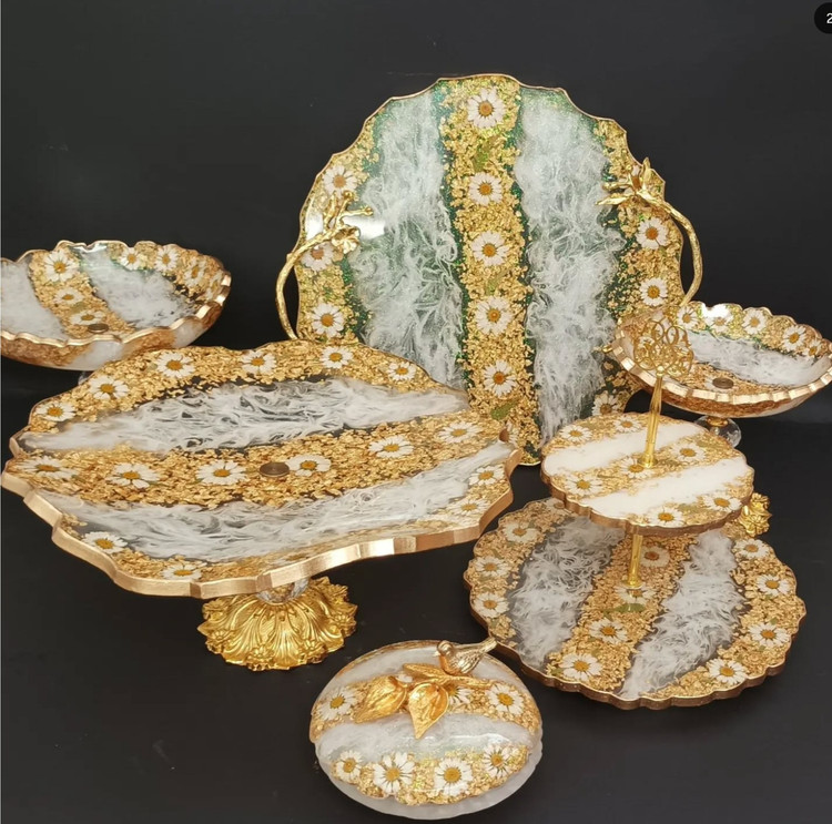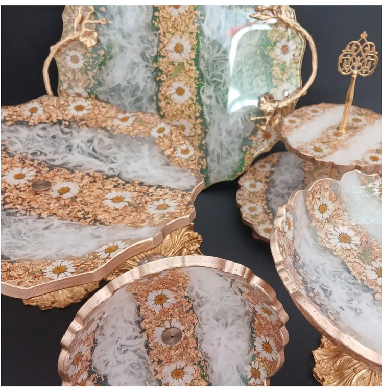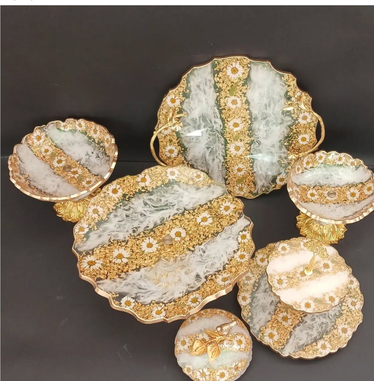 ظروف پذیرایی رزینی ست ۵تکه ب همراه قندان طرح بابونه حریر