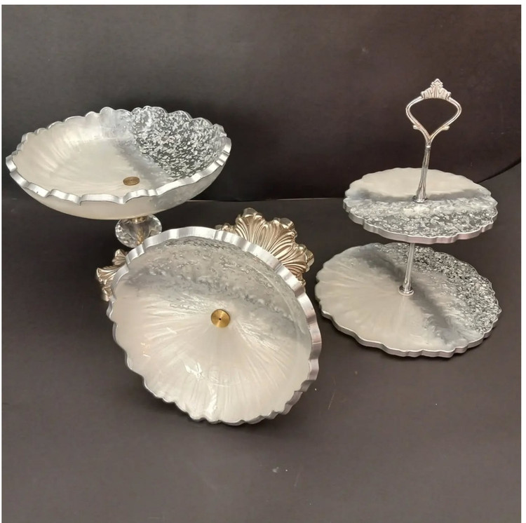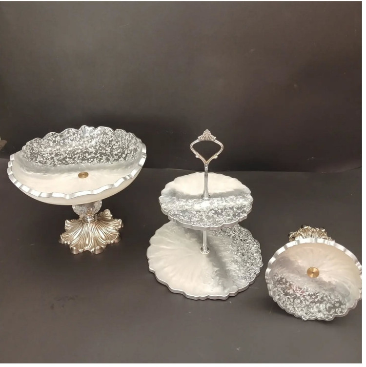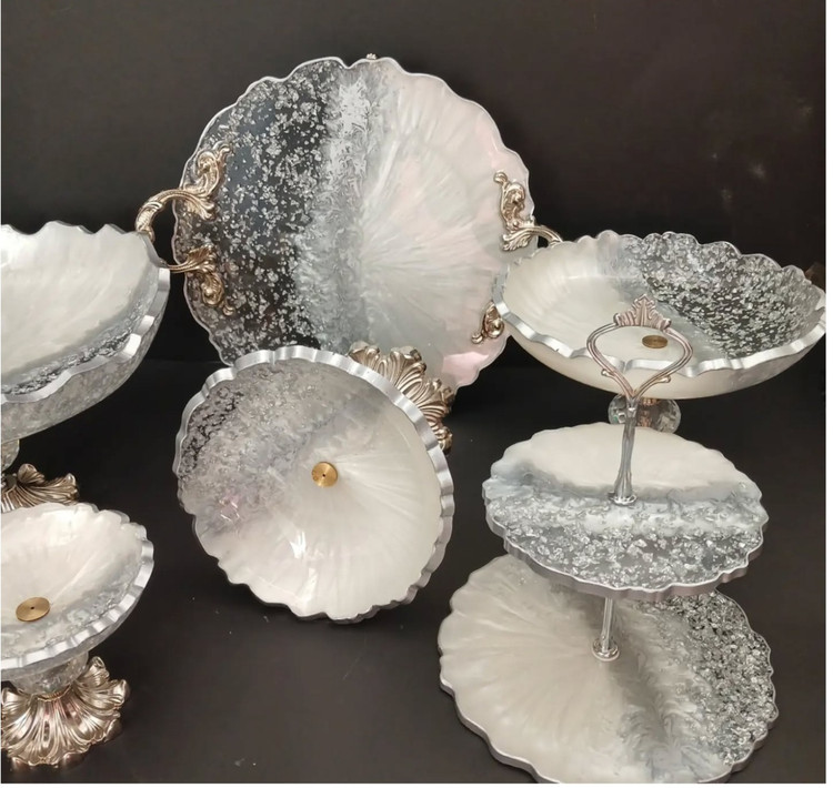 ظروف پذیرایی رزینی ۶ تکه طرح نقره کوب