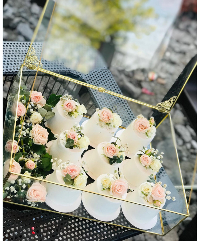 باکس شیشه ای شیرینی باکس کاپ کیک مناسب مراسم عقد و بله برون