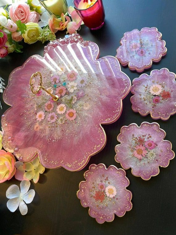 ست شیرینی خوری طرح گل های بهاری صورتی ب همراه زیر استکانی ۶ عددی