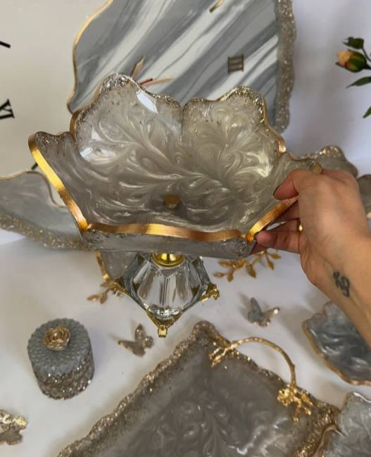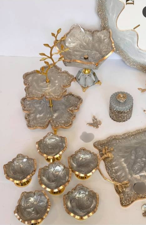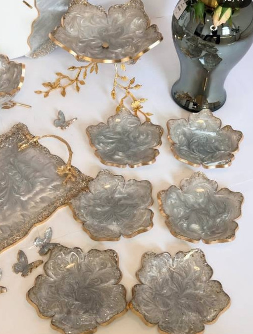 سرویس پذیرایی رزینی 6نفره پایه برنجی ب همراه ساعت طرح سیندرلا