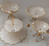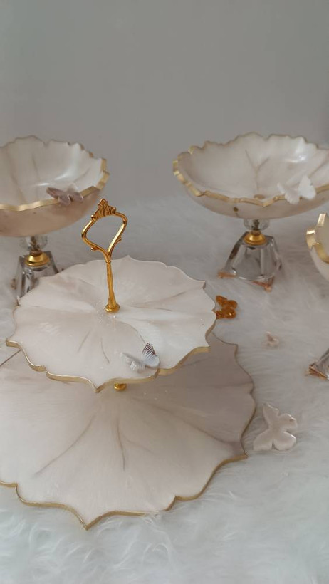 سرویس پذیرایی شامل میوهخوری قطر ۳۰ ،آجیل خوری ، شکلات خوری و یک عدد شیرینی خوری دو طبقه ابعاد طبقات ۳۰ و ۲۵ سانت میباشد