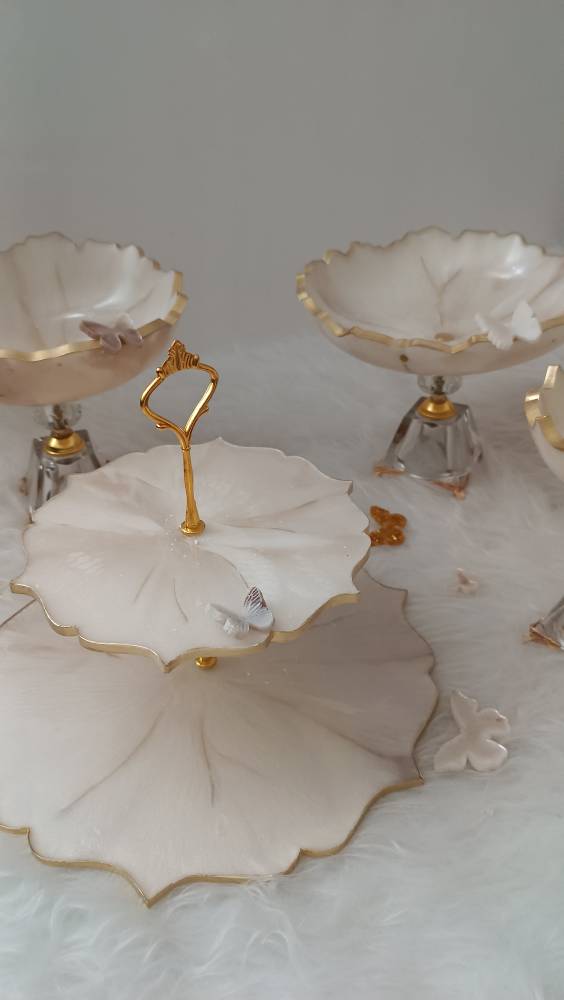 سرویس پذیرایی شامل میوهخوری قطر ۳۰ ،آجیل خوری ، شکلات خوری و یک عدد شیرینی خوری دو طبقه ابعاد طبقات ۳۰ و ۲۵ سانت میباشد