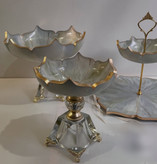 سرویس پذیرایی شامل میوهخوری قطر۳۰ ،شکلات خوری قطر۲۰دیک عدد شیرینی خوری دو طبقه ابعاد طبقات ۳۰ و ۲۰ سانت میباشد