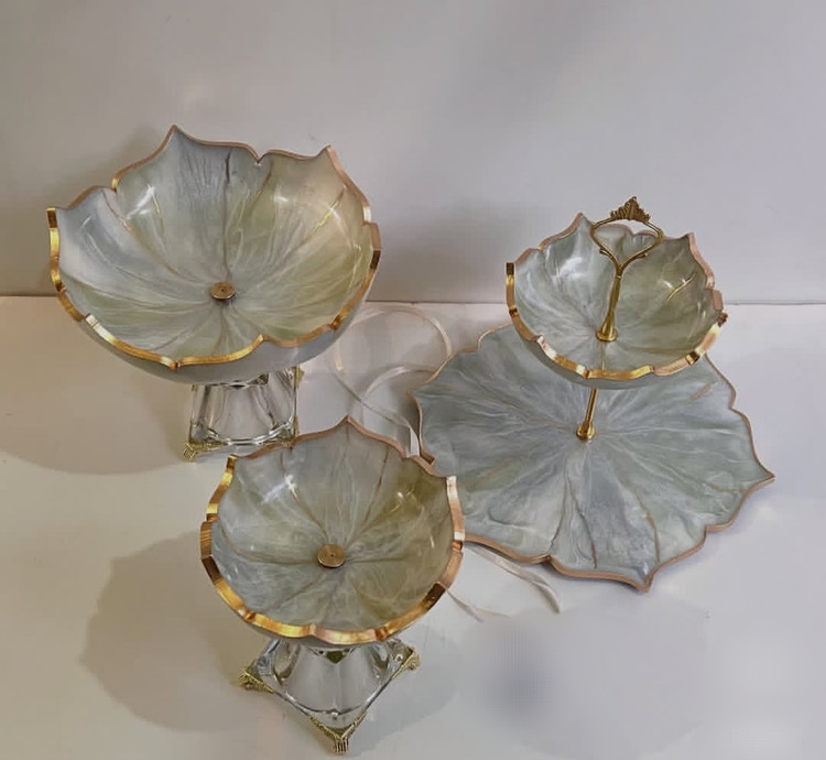ظروف پذیرایی رزینی سه تکه جهیزیه هدیه روز زن