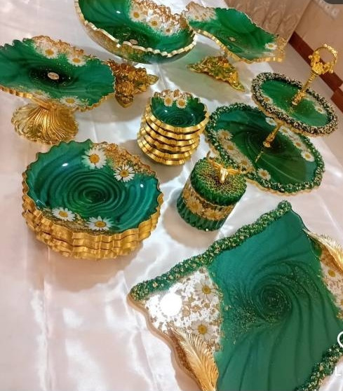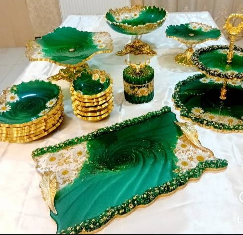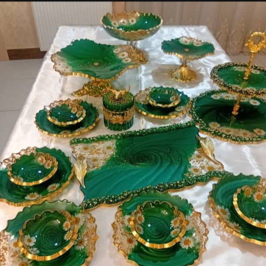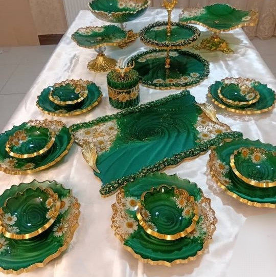 ظروف پذیرایی رزینی سرویس ۶نفره سبز درباری و بابونه