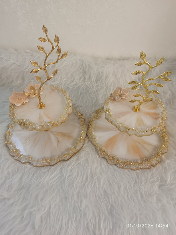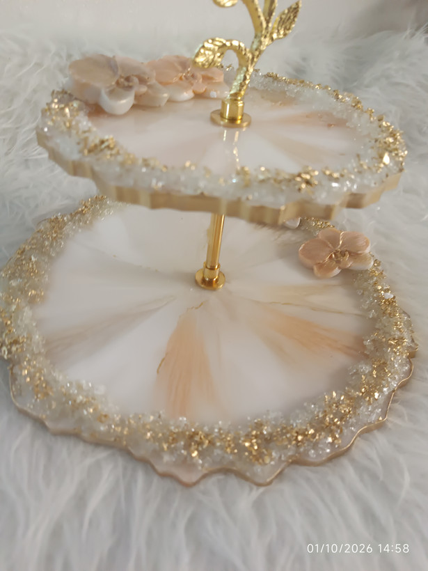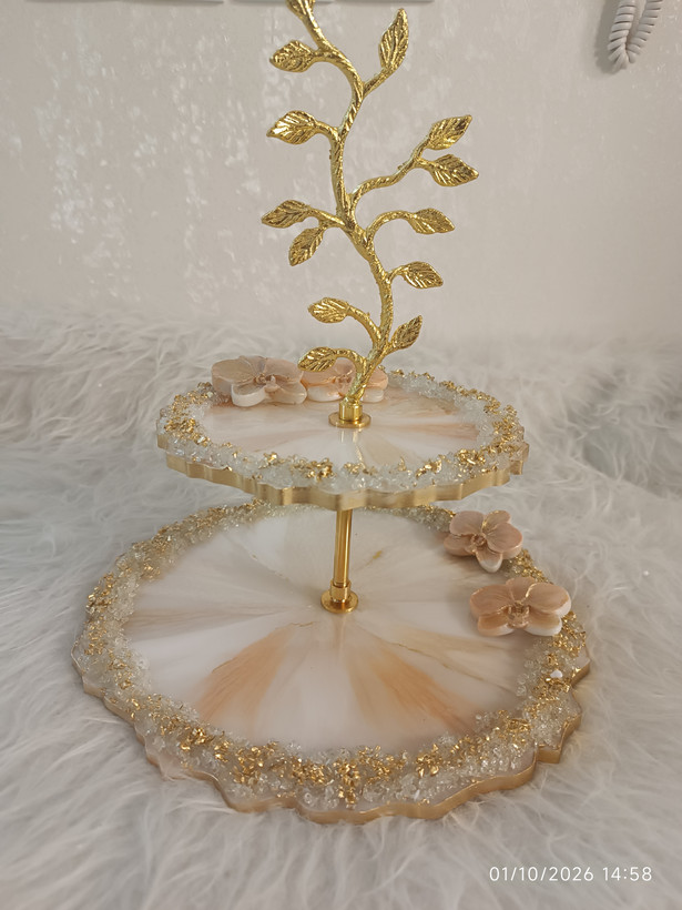 ابعاد طبقات۲۵,۳۳ سانت و کارشده کریستال دور کار ب همراه گل ارکیده دکوری روی کار