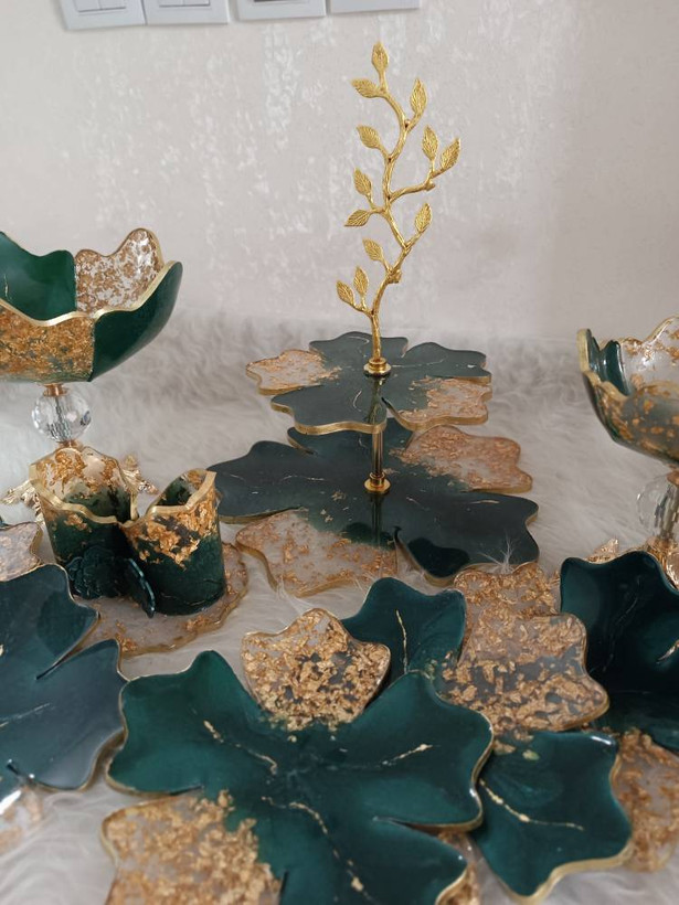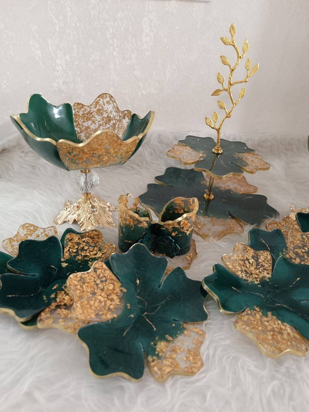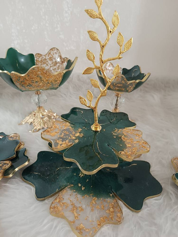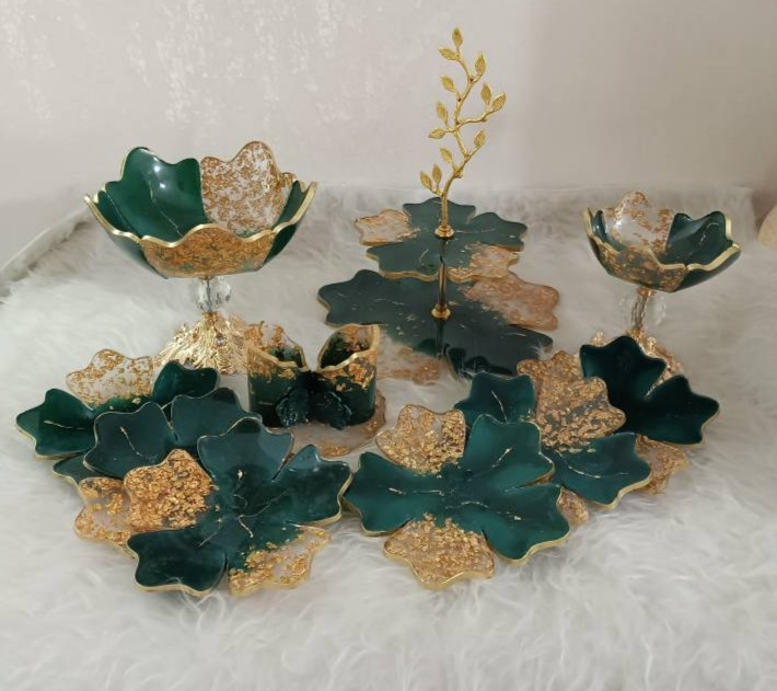 ظروف پذیرایی سرویس ۴تکه ب همراه ۶ عدد پیش دستی رزینی