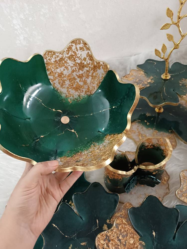 ظروف پذیرایی سرویس ۴تکه ب همراه ۶ عدد پیش دستی رزینی