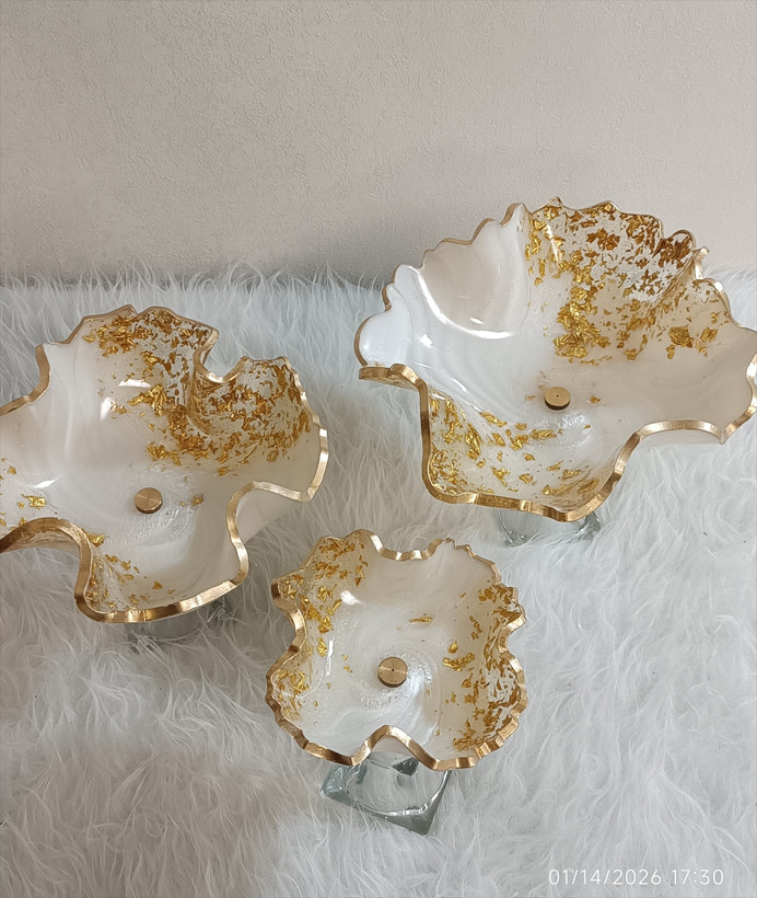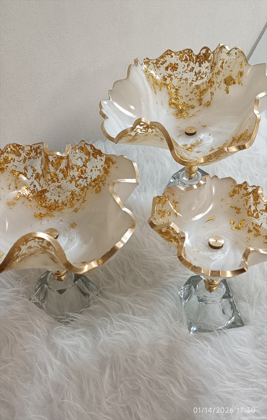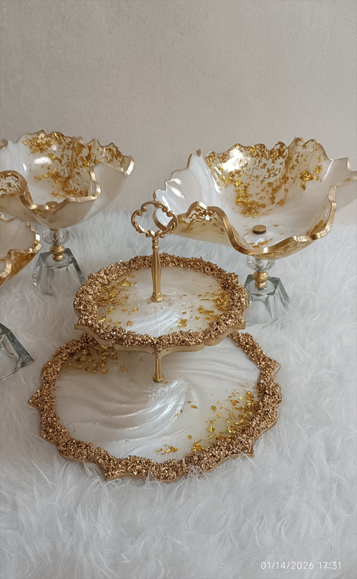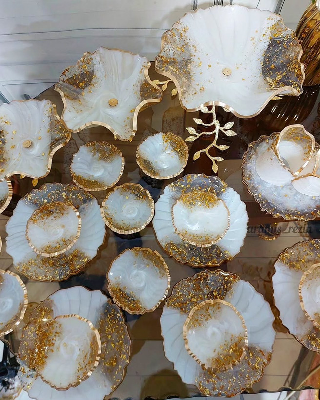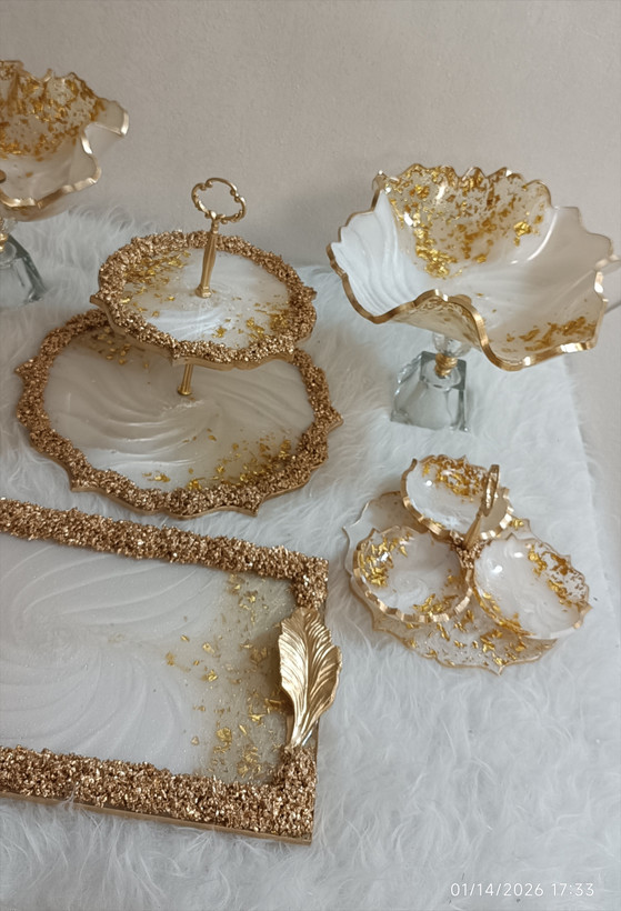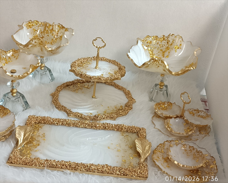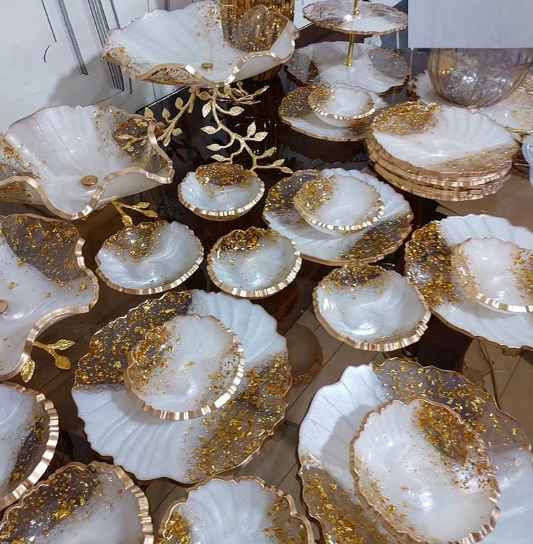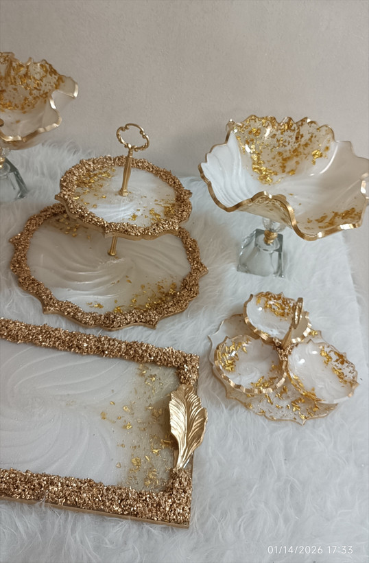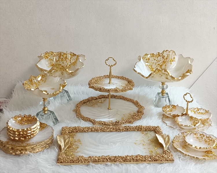 سرویس پذیرایی رزینی ۱۲نفره جهیزیه عروس سفید طلایی