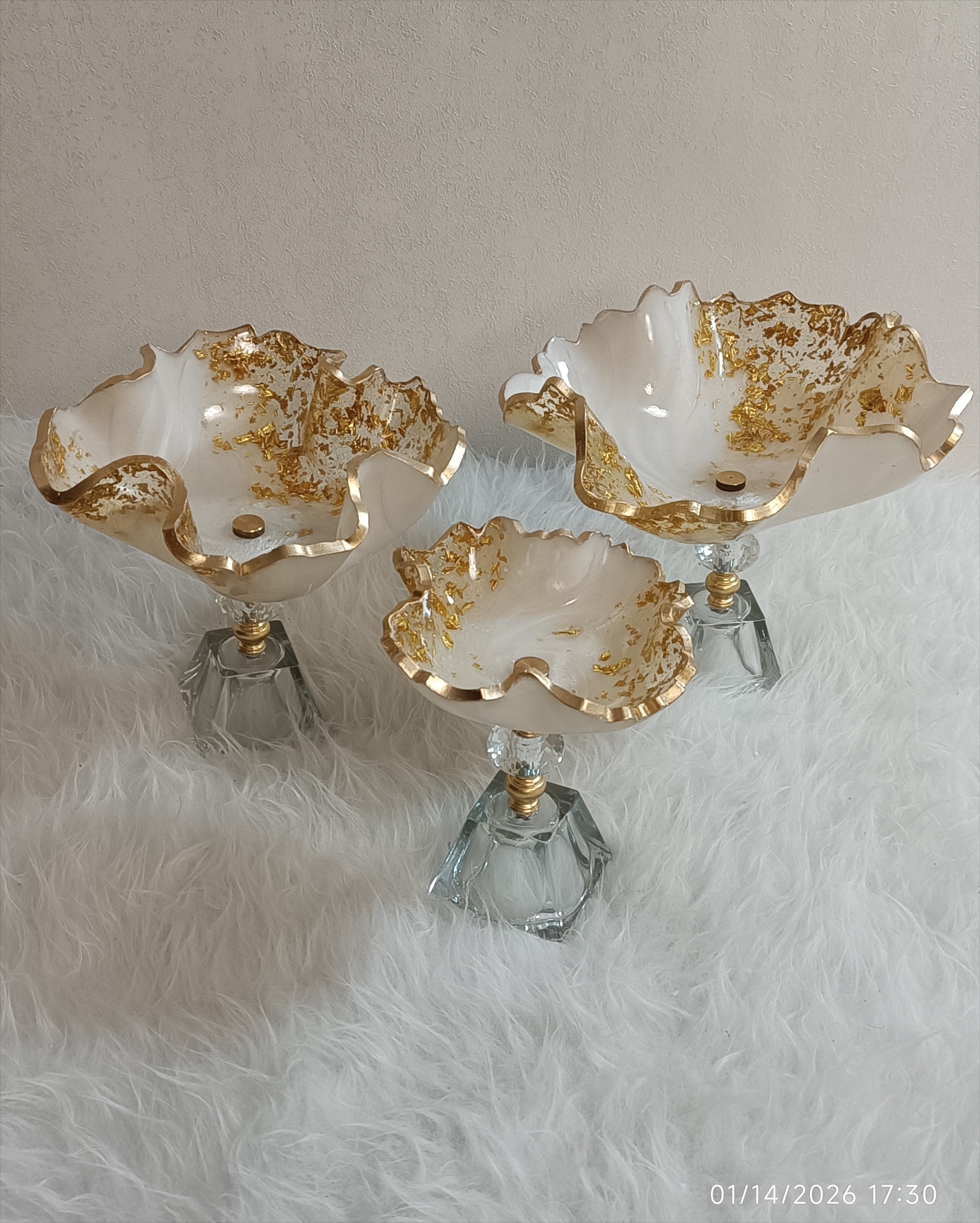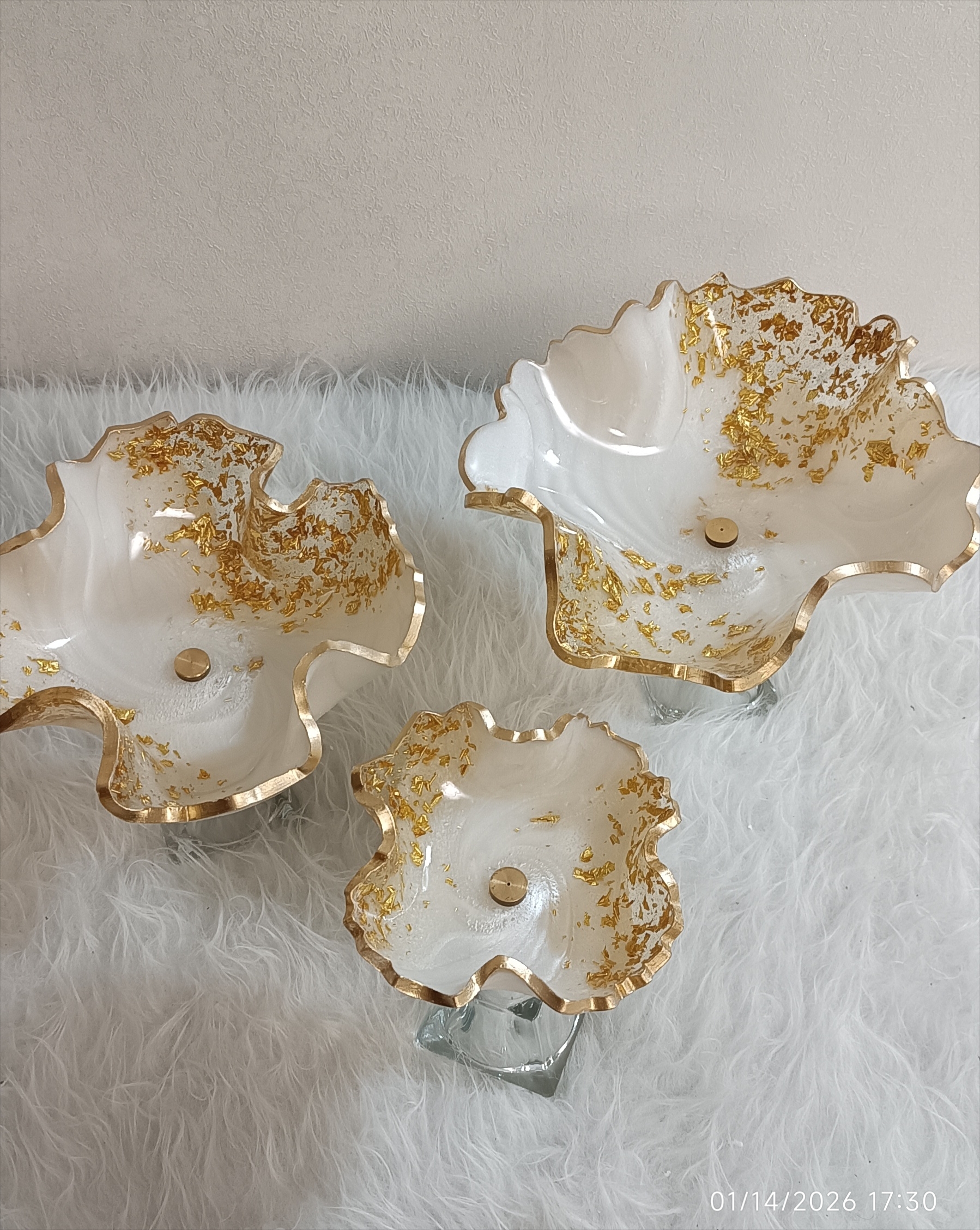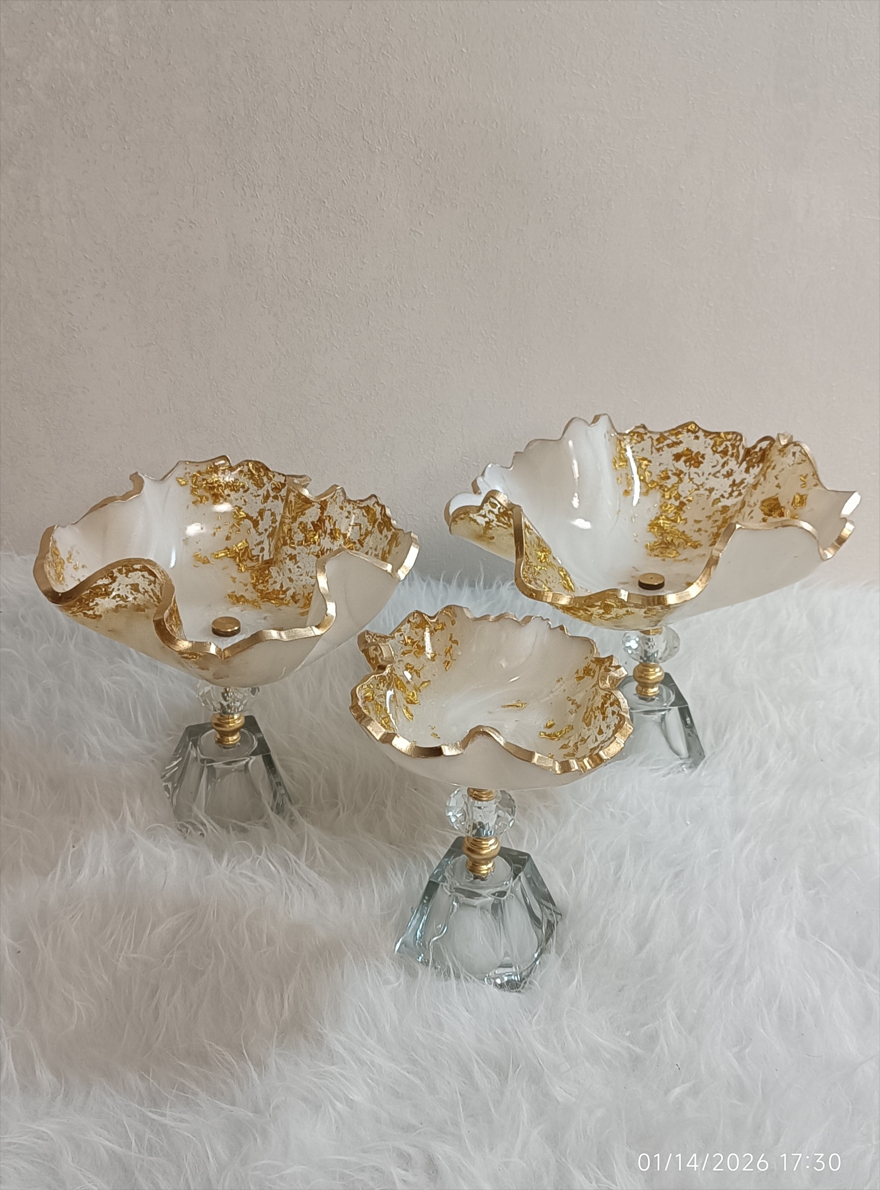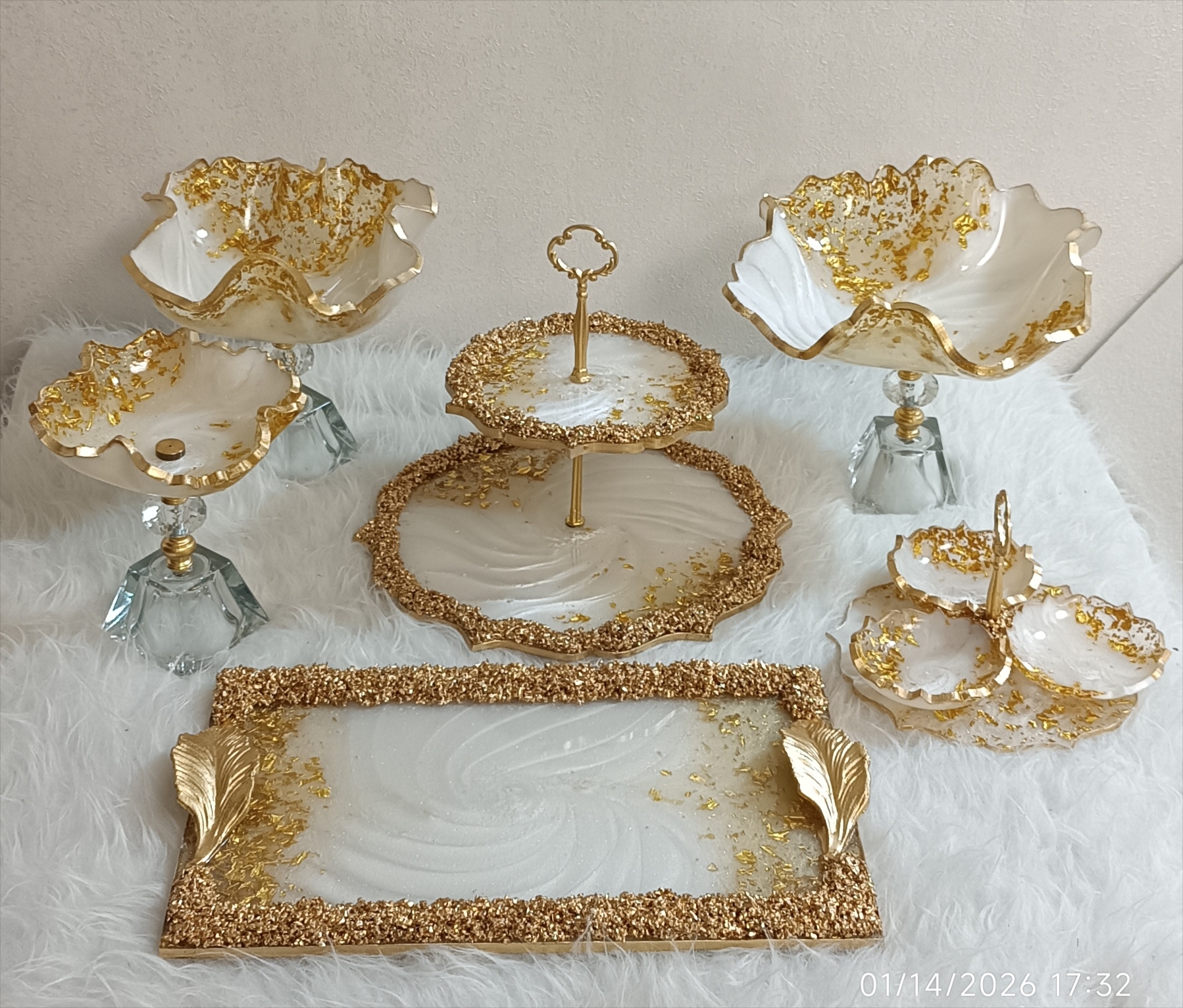 سرویس پذیرایی رزینی ۱۲نفره جهیزیه عروس سفید طلایی