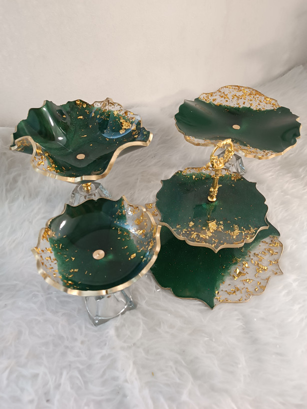 سرویس پذیرایی ۴تکه رزینی سبز زمردی